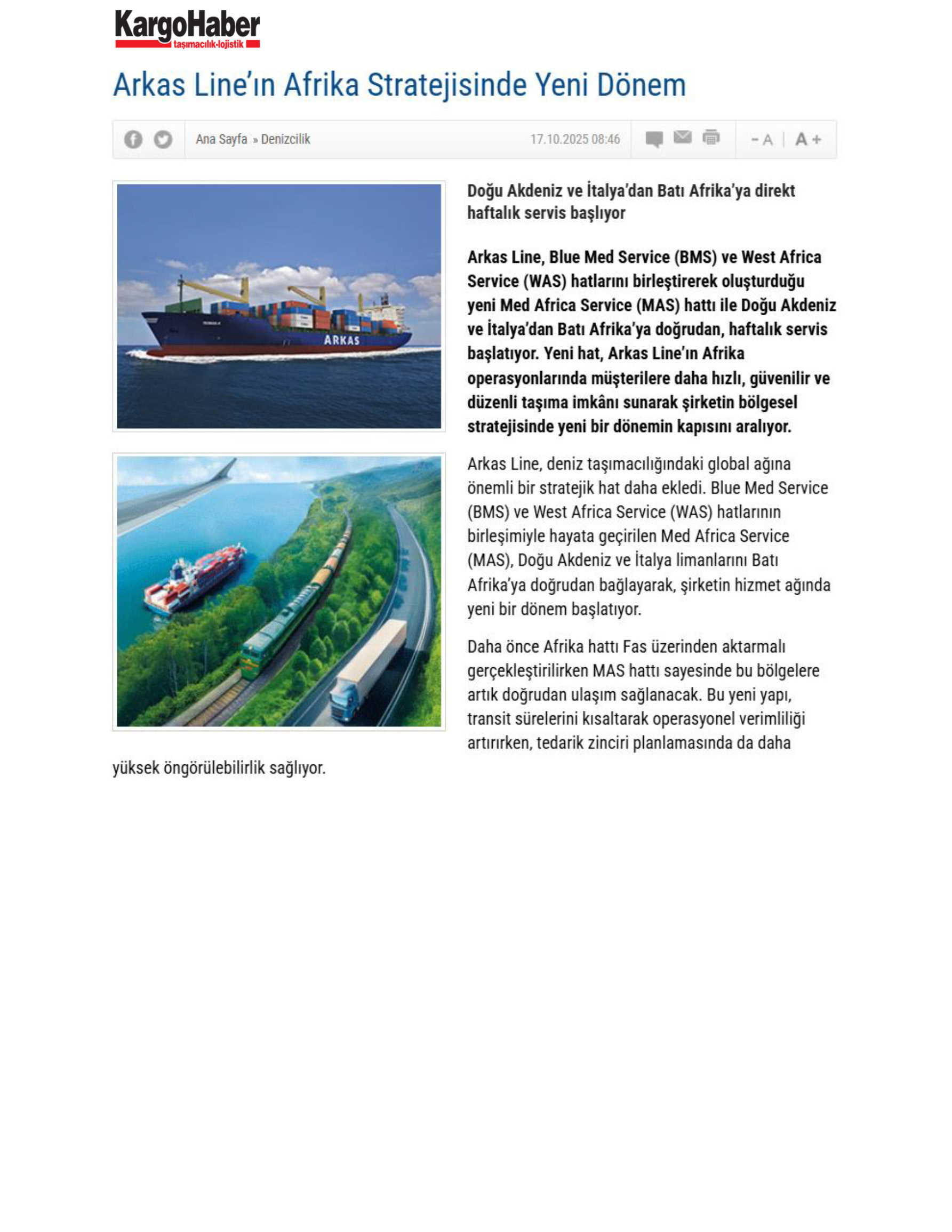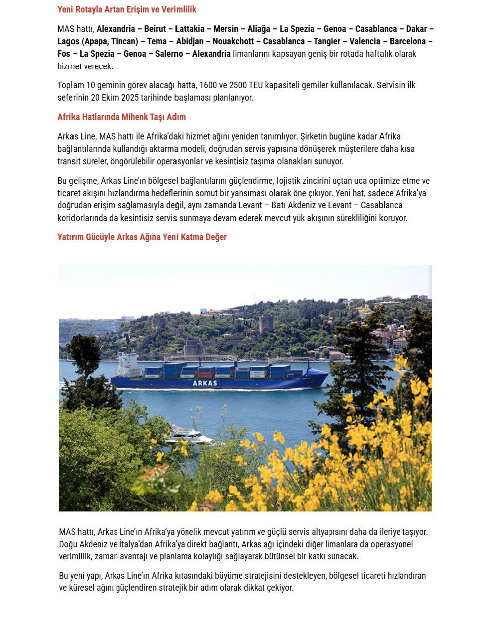 Arkas Line’ın Afrika Stratejisinde Yeni Dönem: Doğu Akdeniz ve İtalya’dan Batı Afrika’ya Direkt Haftalık Servis Başlıyor