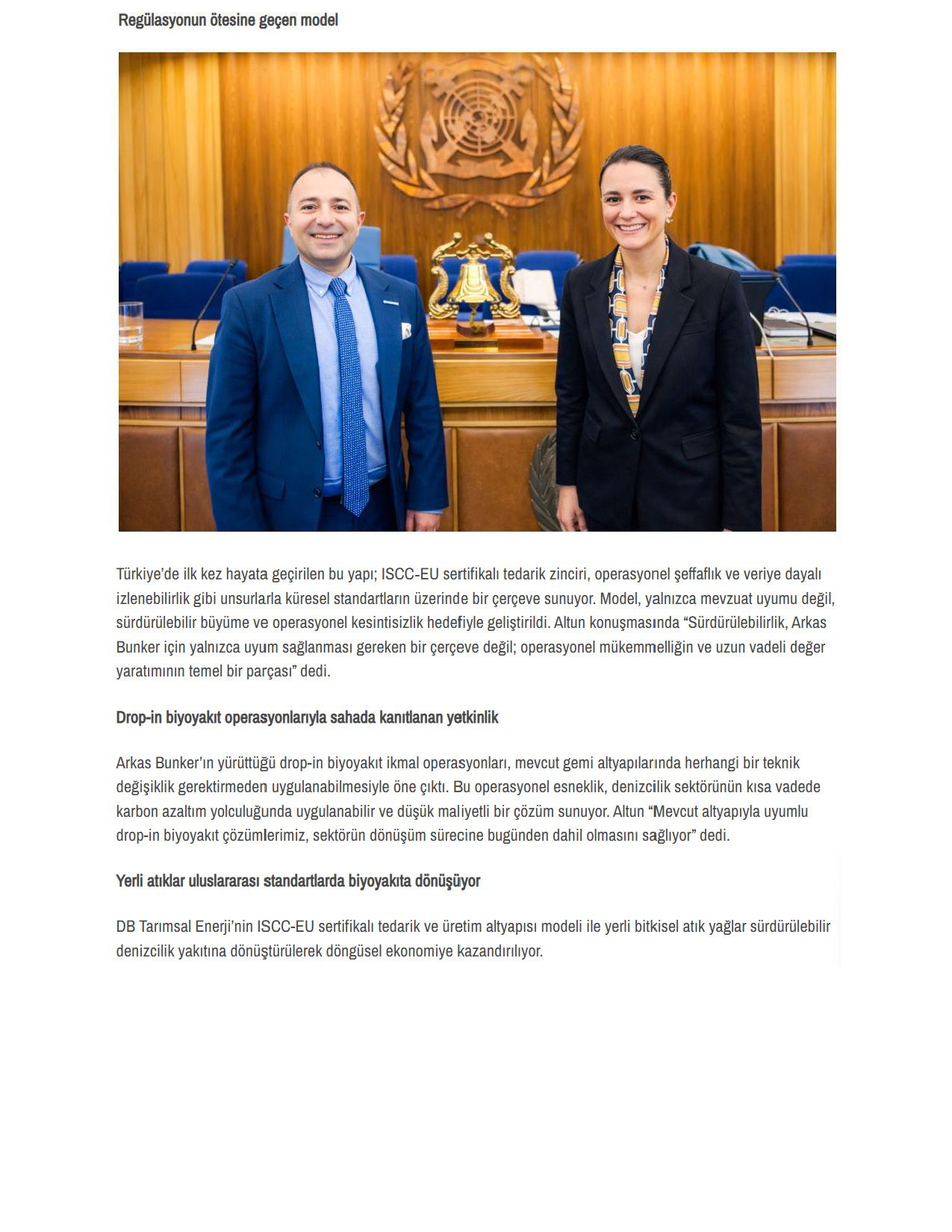 Arkas Bunker ve DB Tarımsal Enerji’nin Sistemi IMO’da Örnek Model Oldu