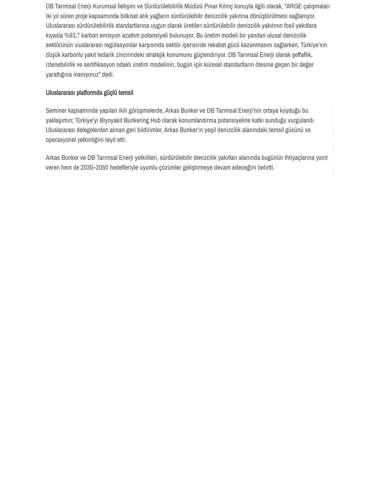 Arkas Bunker ve DB Tarımsal Enerji’den Sürdürülebilir Denizcilik Vizyonu