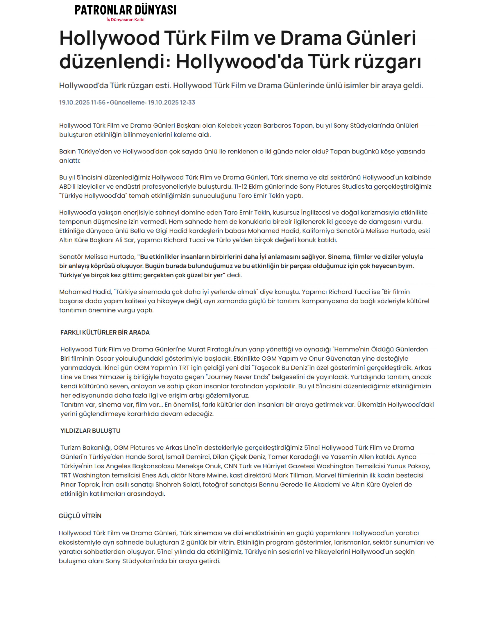 “Journey Never Ends” Premiere of Enes Yılmazer’s Atlantic Voyage with Arkas Line Took Place in Los Angeles