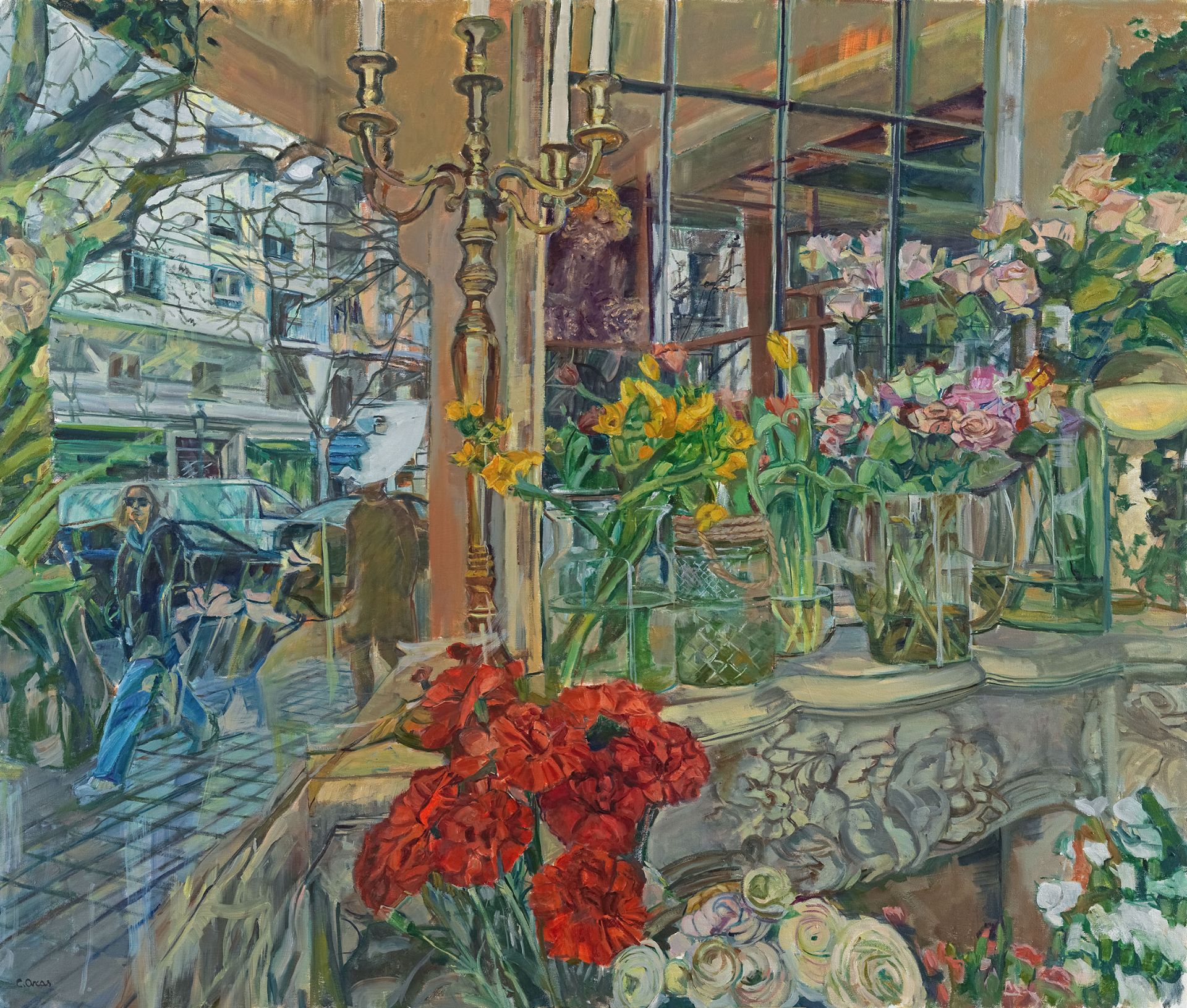 In her 14th solo exhibition, Claire Arkas draws viewers away from grand narratives and invites them into brief, quiet moments where light intensifies. The exhibition presents a selection in which the artist continues her engagement with the themes of nature, water, architecture, and the figure, yet this time shifts her focus from the center of the scene to its peripheral details. Rather than broad panoramas, Arkas’ paintings view the world through small fragments: the broken reflection of a chandelier, a few plants hanging over a wall, or a narrow street.