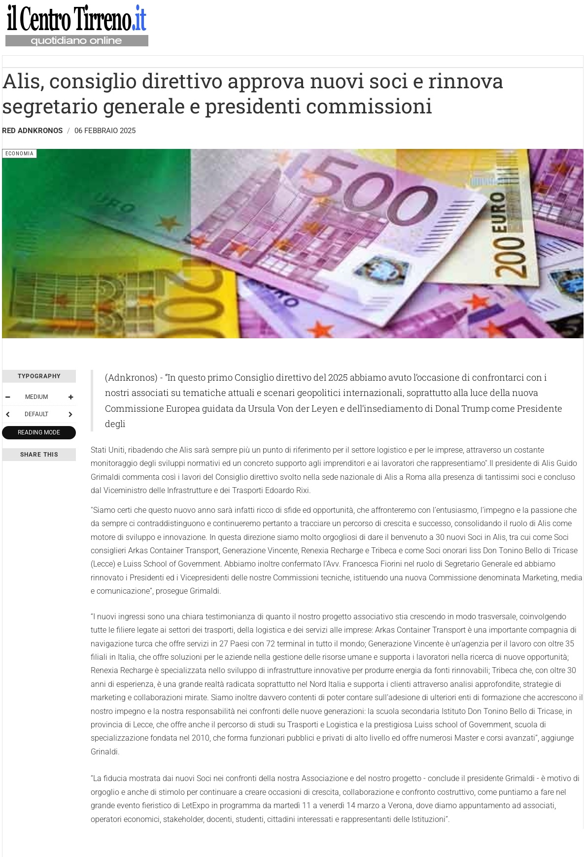 ALIS: IL CONSIGLIO DIRETTIVO APPROVA NUOVI IMPORTANTI SOCI E RINNOVA SEGRETARIO GENERALE E PRESIDENTI DELLE COMMISSIONI