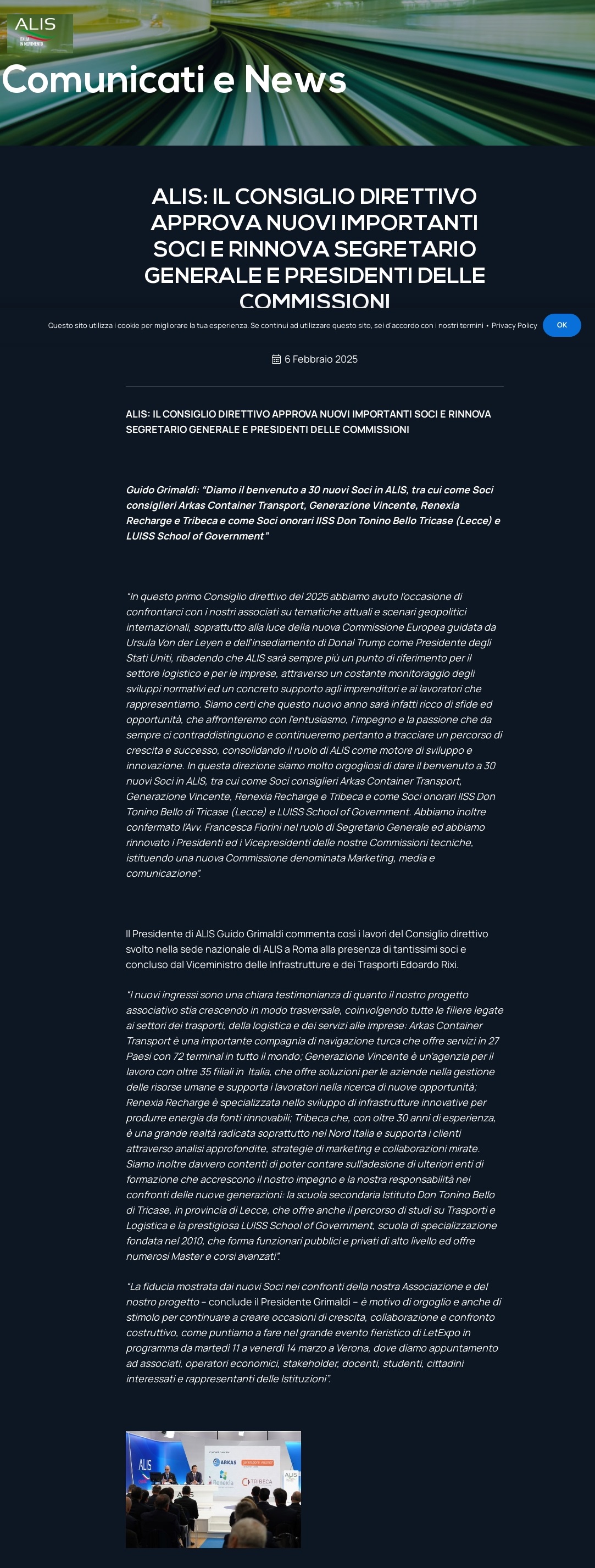 ALIS: IL CONSIGLIO DIRETTIVO APPROVA NUOVI IMPORTANTI SOCI E RINNOVA SEGRETARIO GENERALE E PRESIDENTI DELLE COMMISSIONI