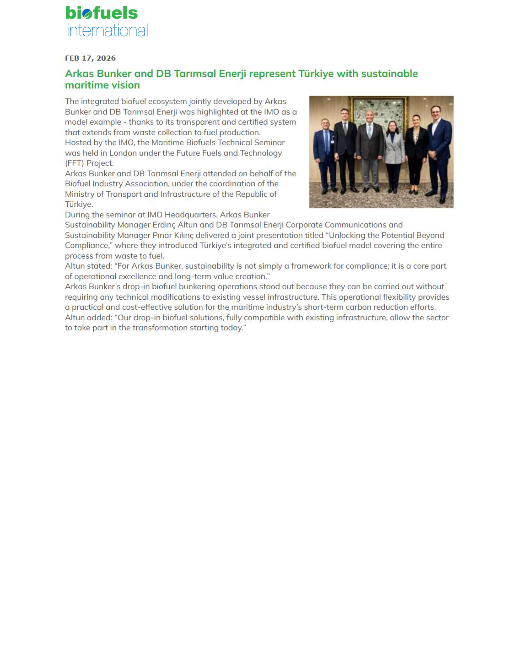 Arkas Bunker and DB Tarımsal Enerji Represent Türkiye at the IMO with a Sustainable Maritime Vision