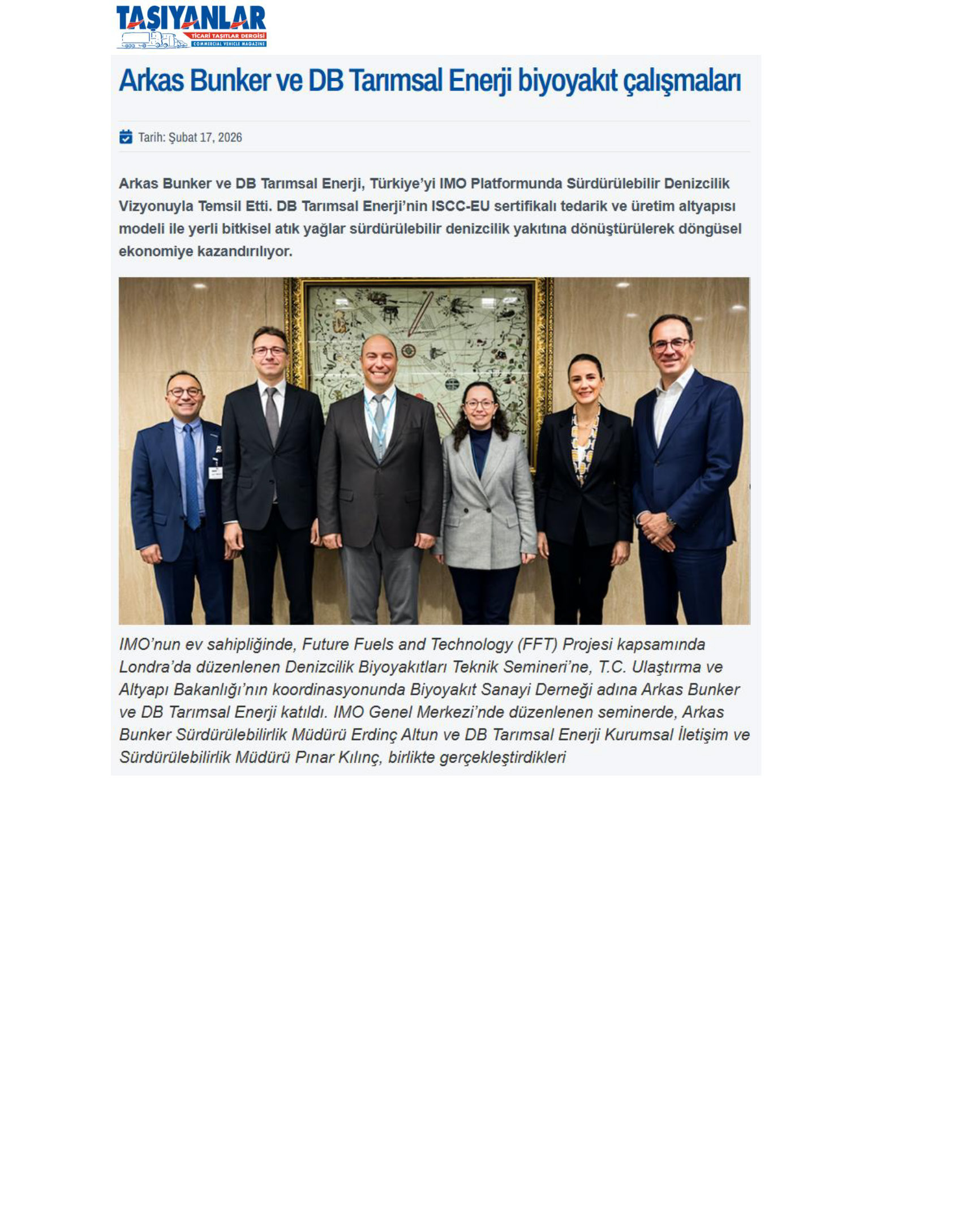 Arkas Bunker and DB Tarımsal Enerji Represent Türkiye With Sustainable Maritime Vision