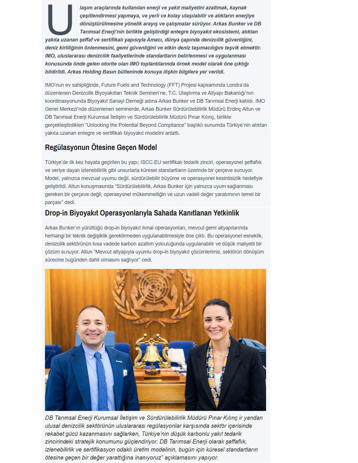 Arkas Bunker and DB Tarımsal Enerji Represent Türkiye at the IMO with a Sustainable Maritime Vision