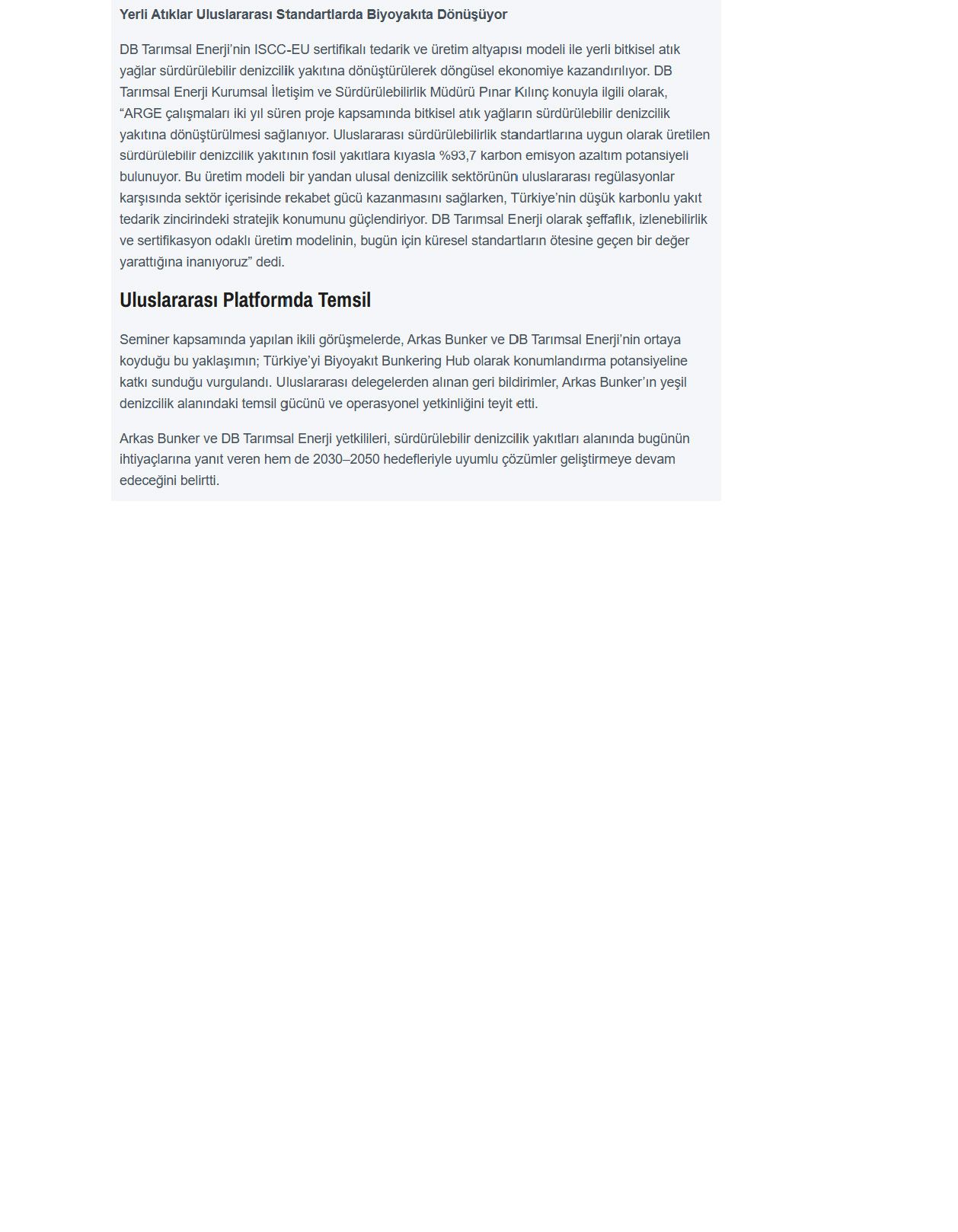 Arkas Bunker ve DB Tarımsal Enerji’den Sürdürülebilir Denizcilik Vizyonu