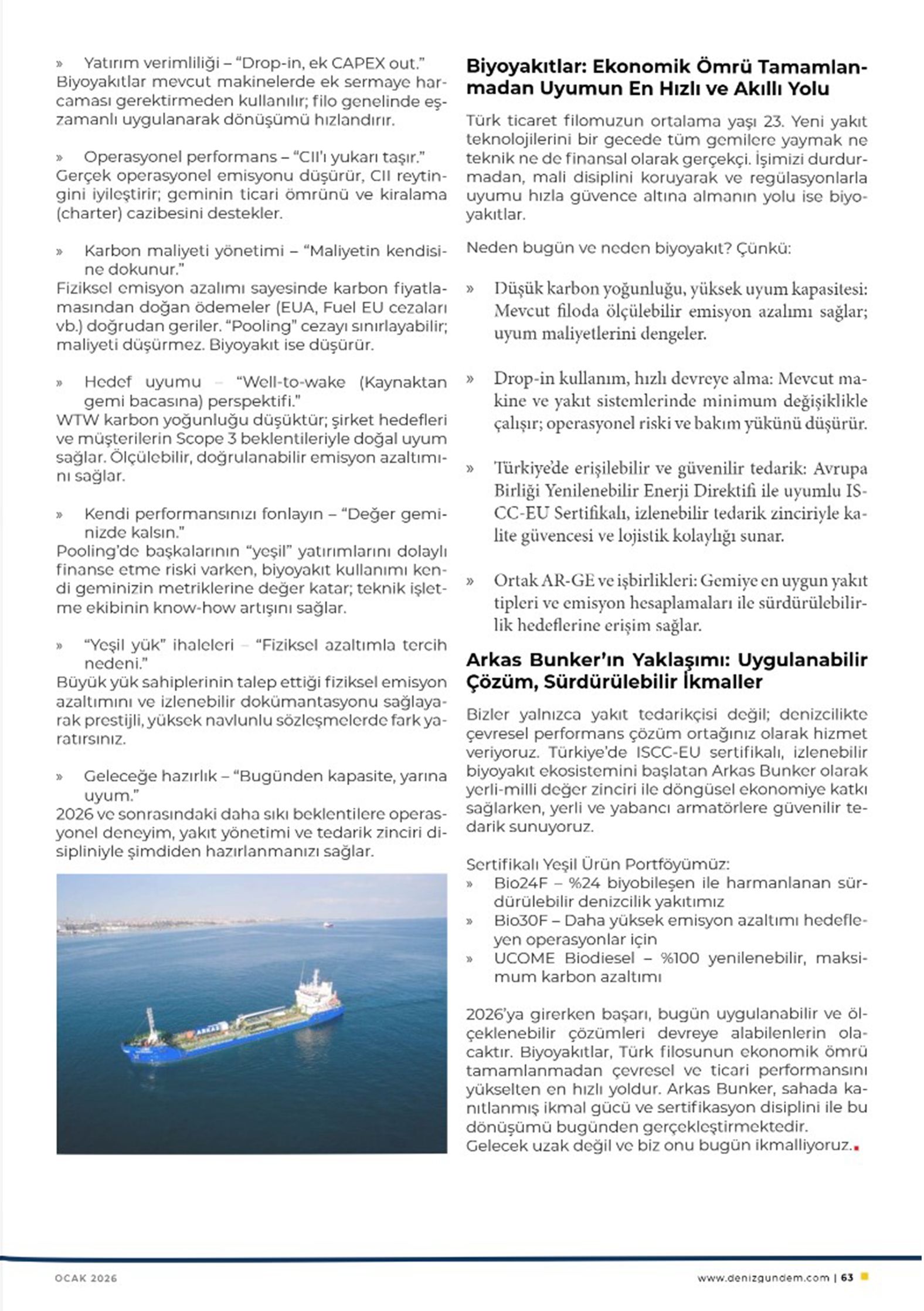 Arkas Bunker'dan Çifte Biyoyakıt Operasyonu