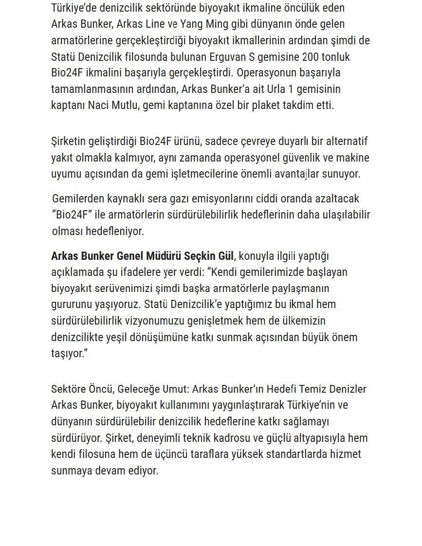 Arkas Bunker Successfully Supplies Biofuel To Statu Denizcilik’s Vessel Erguvan S