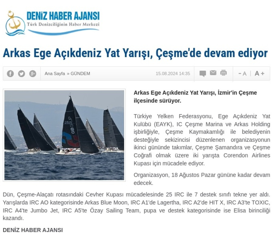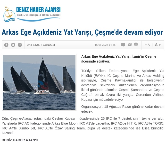 Arkas Ege Açık Deniz Yat Yarışı, Çeşme'de devam ediyor