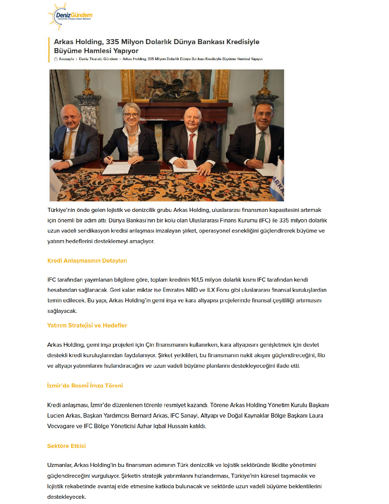 Arkas’a "Ulaşım Ve Lojistik Altyapısını Güçlendirmeye Yönelik Yatırımlarına Destek İçin” Sendikasyon Kredisi