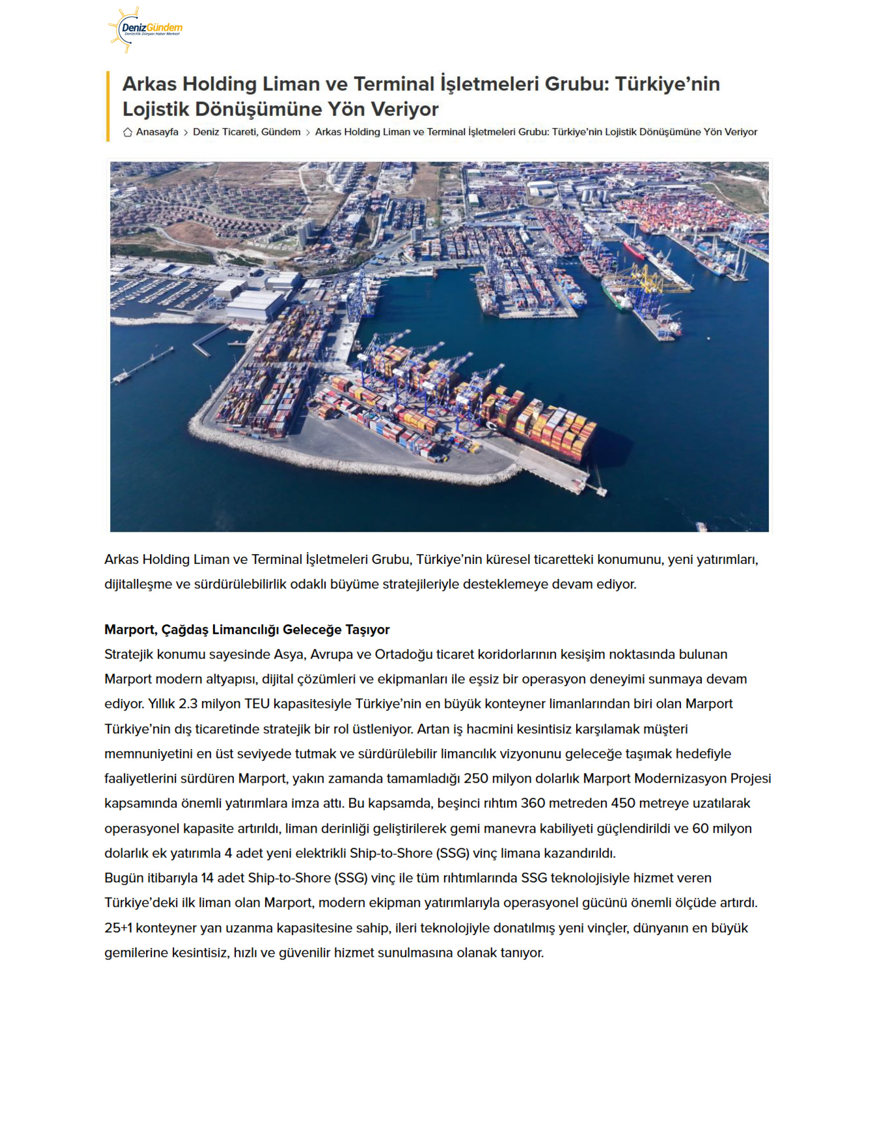 Arkas Holding Liman ve Terminal İşletmeleri Grubu: Türkiye’nin Lojistik Dönüşümüne Yön Veriyor