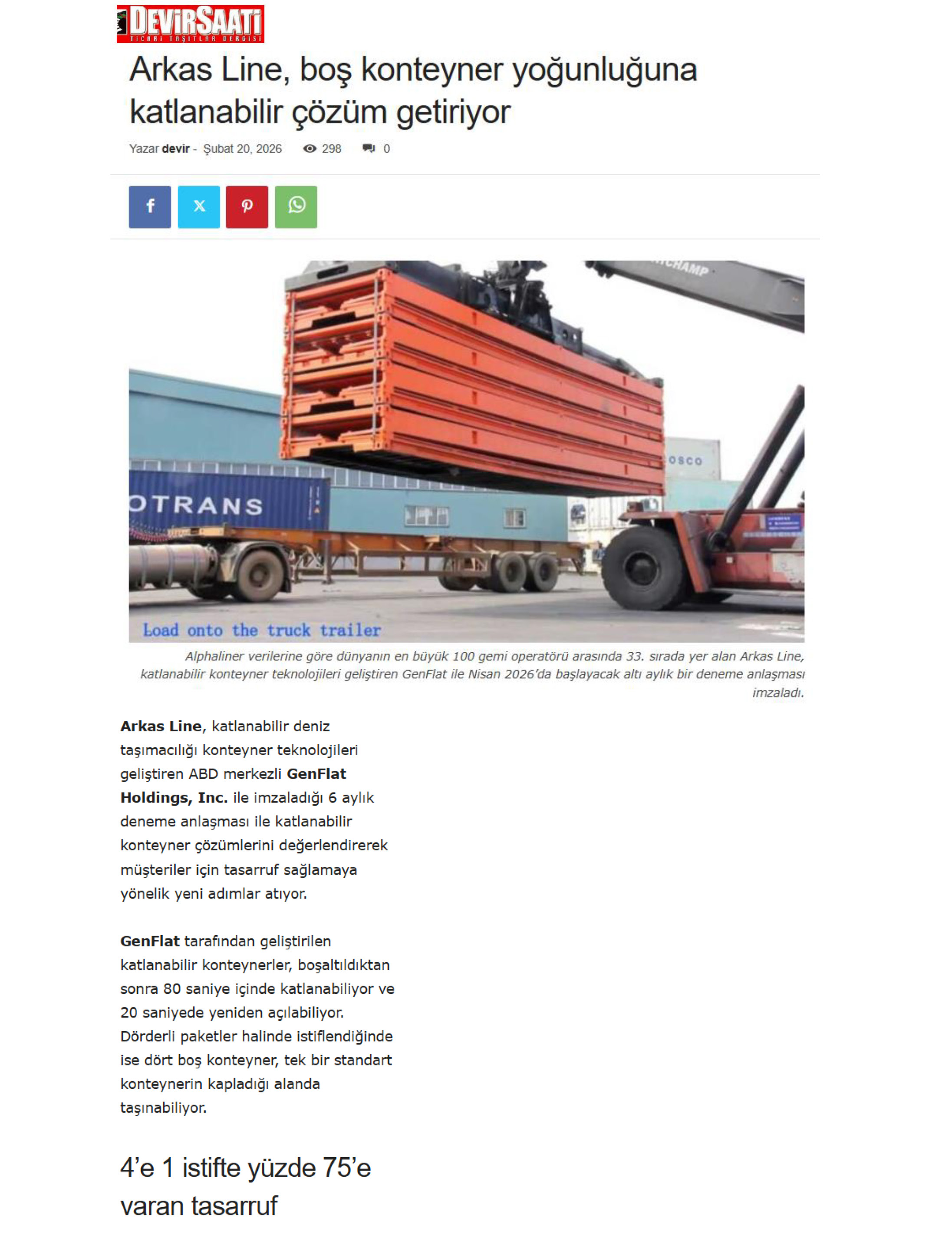 Arkas Line, Gen Flat İle Deneme Anlaşması Yaptı