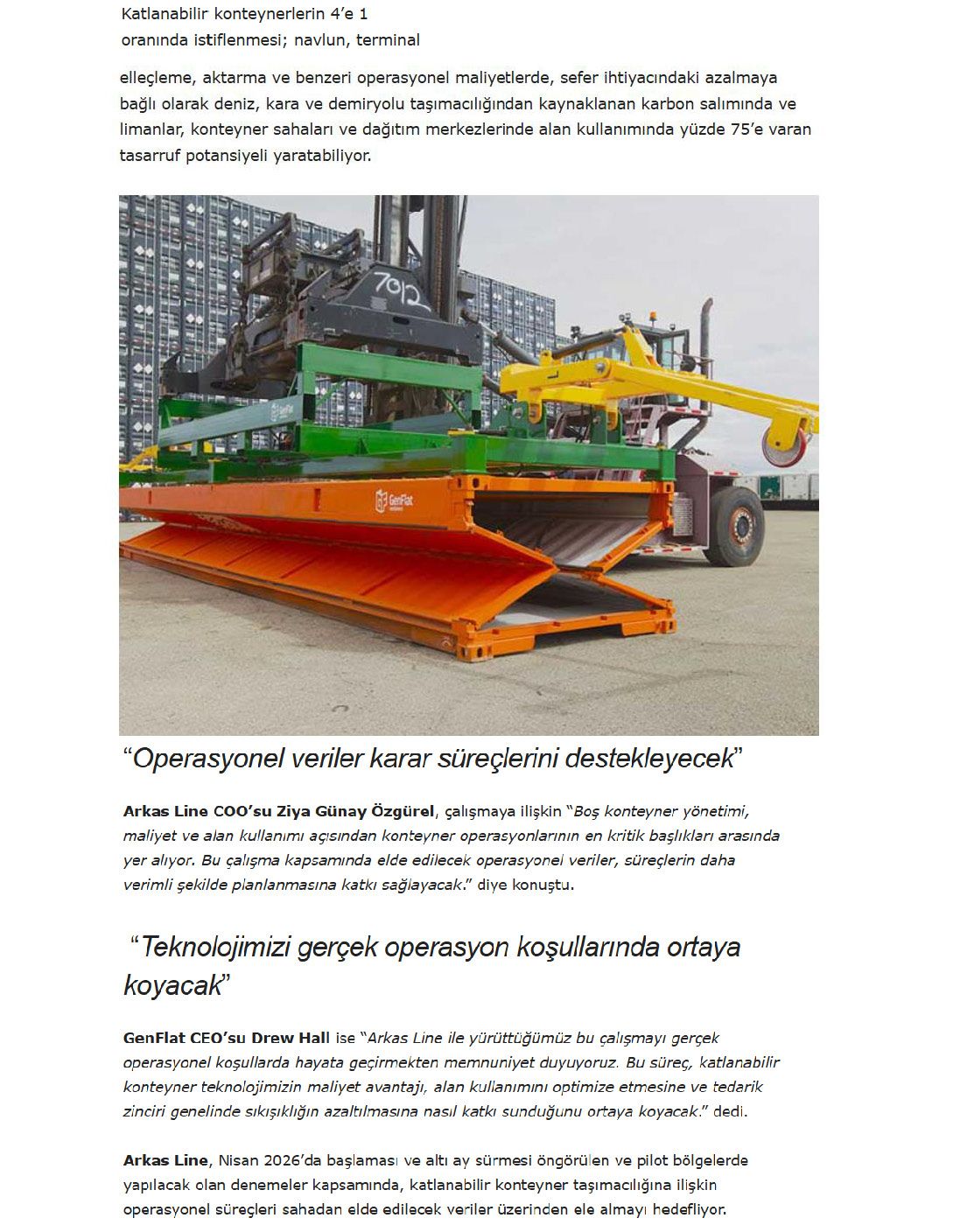 Arkas Line Katlanabilir Konteynerleri Deniyor