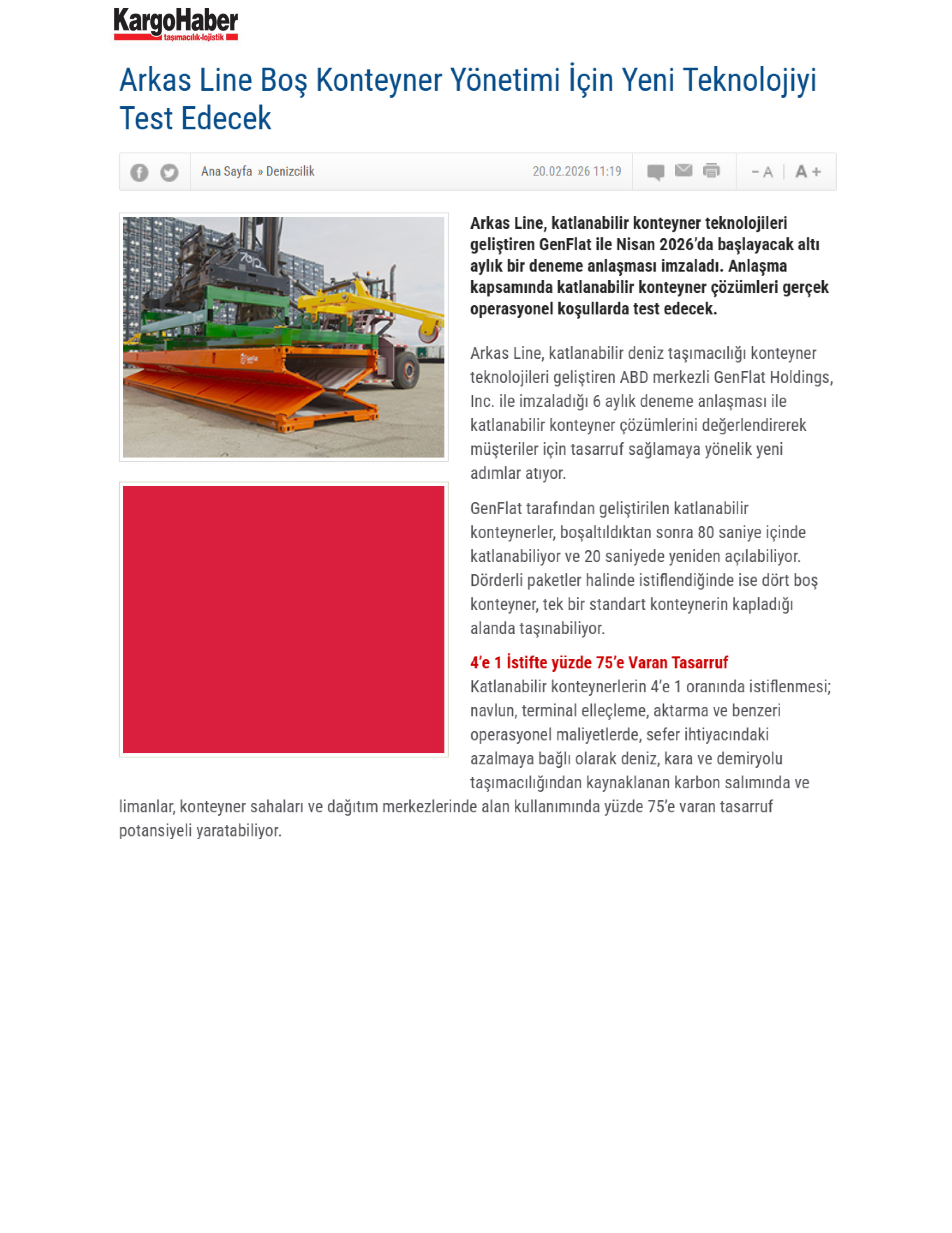 Arkas Line, Gen Flat İle Deneme Anlaşması Yaptı