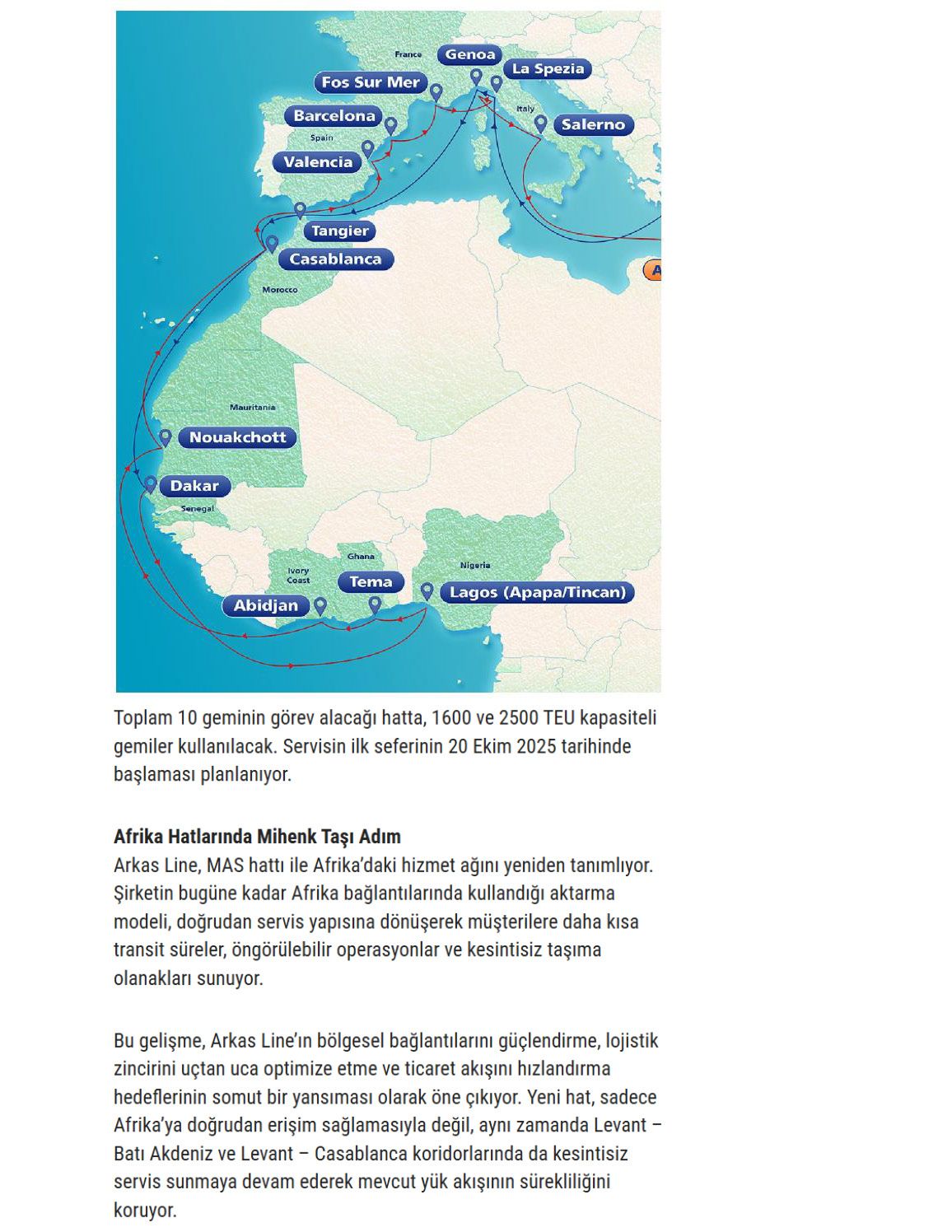 Arkas To Launch Direct E. Med-W. Med-West Africa Loop