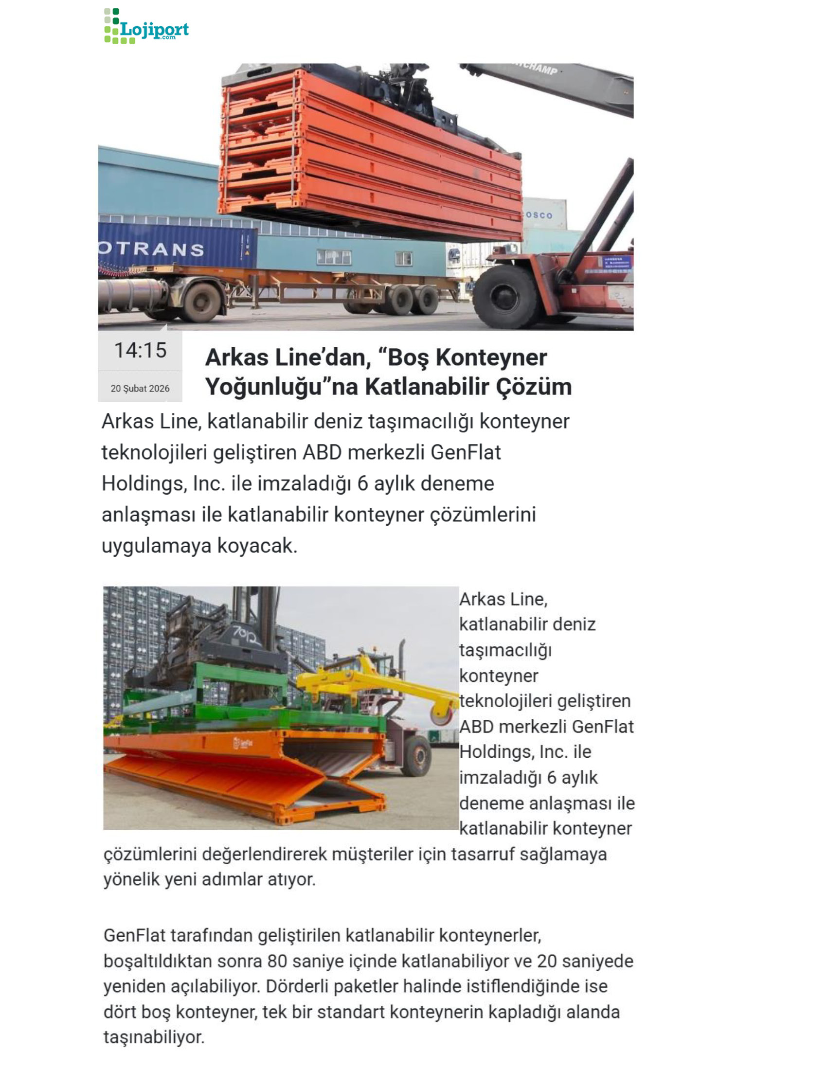 Arkas Line Katlanabilir Konteyner İle Boş Konteyner Maliyetlerini Düşürmeyi Hedefliyor
