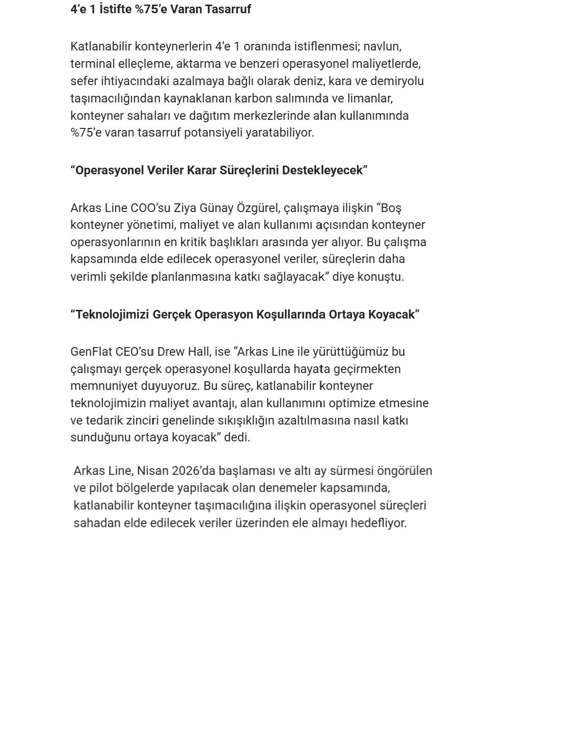 Arkas Line, Gen Flat İle Deneme Anlaşması Yaptı