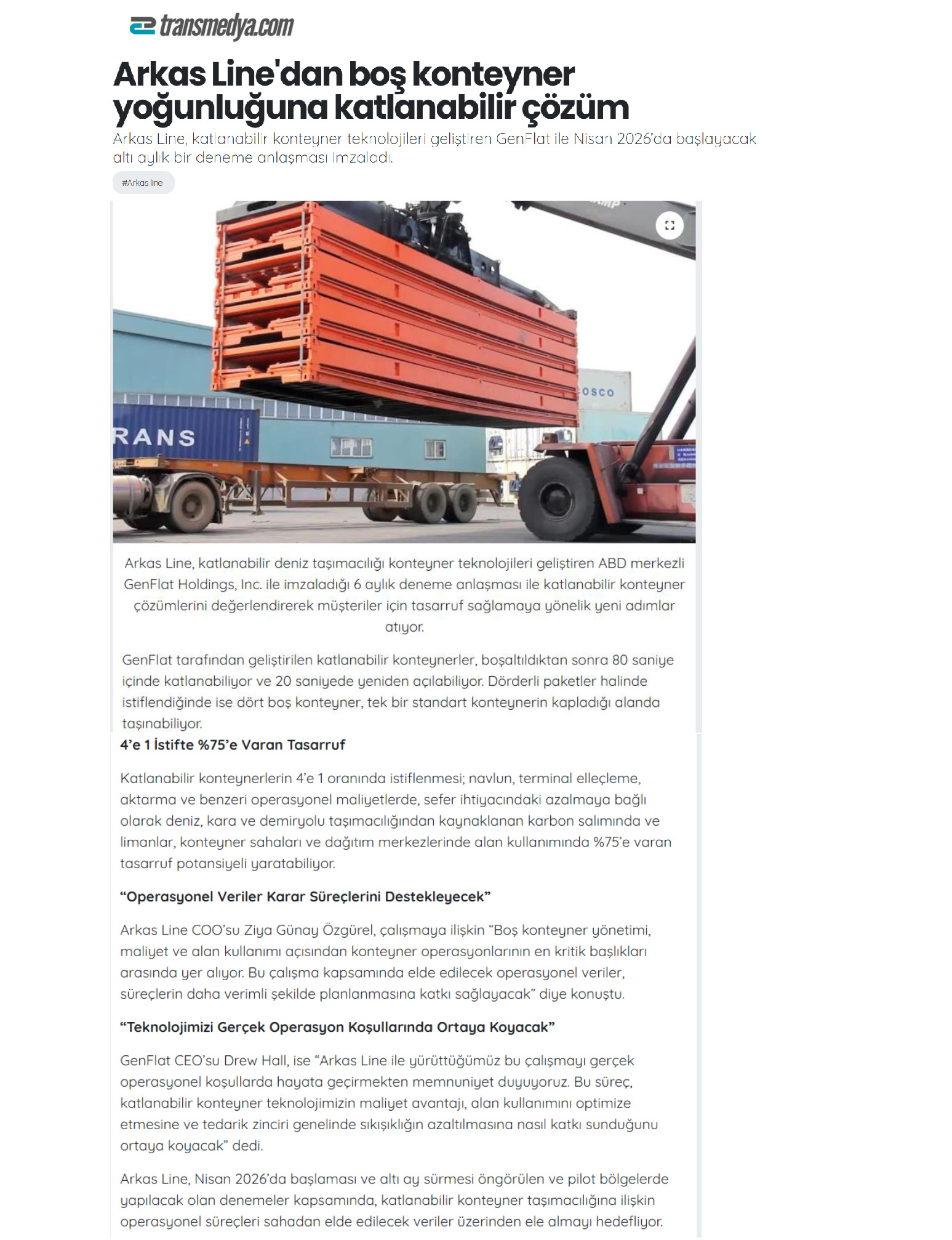 Arkas Line, Gen Flat İle Deneme Anlaşması Yaptı