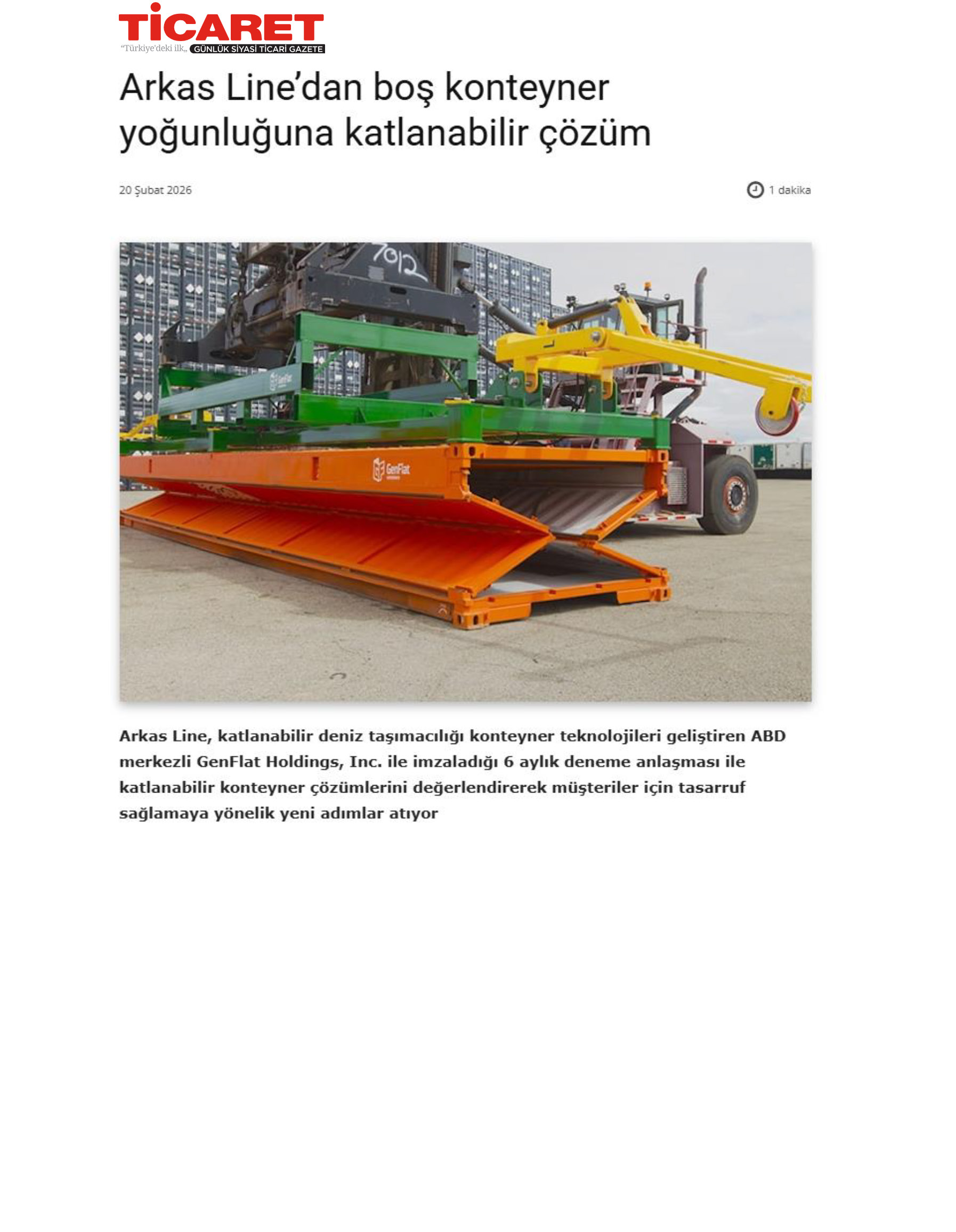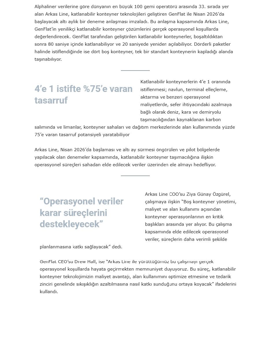 Arkas Line, Gen Flat İle Deneme Anlaşması Yaptı