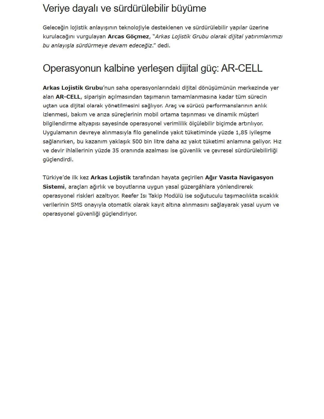 Arkas Lojistik, Dijital Yatırımlarla Operasyonel Gücünü Destekliyor