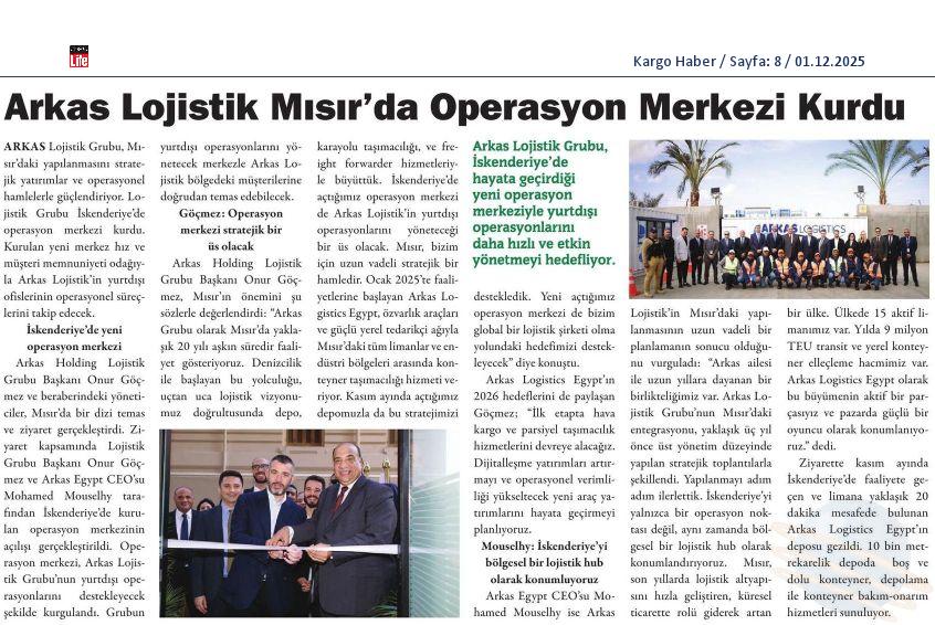 Arkas Lojistik Mısır’da Operasyon Merkezi Açtı