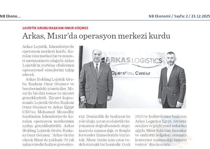 Arkas Lojistik Mısır'da Operasyon Merkezi Kurdu