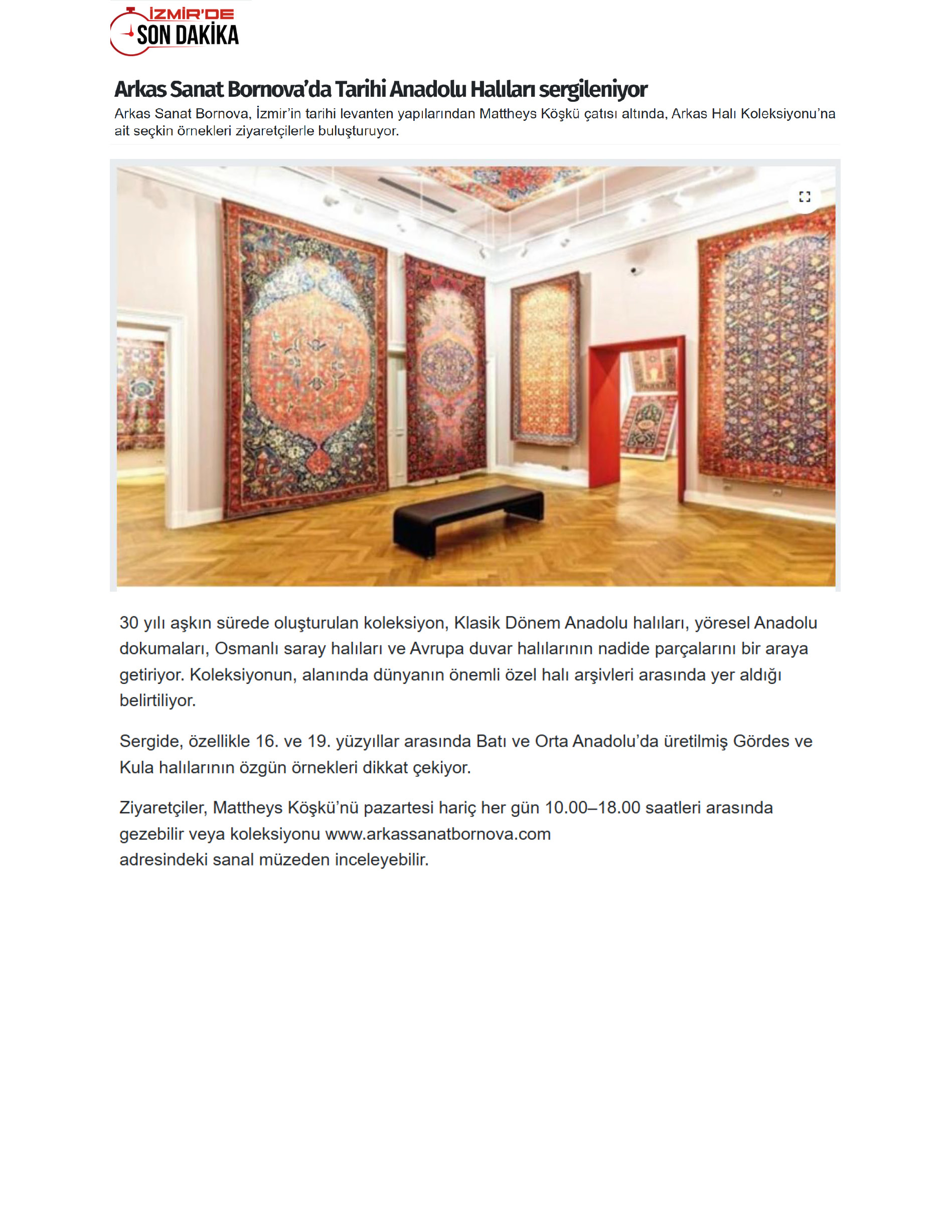 Arkas Sanat Bornova’da Tarihi Anadolu Halıları Sergileniyor