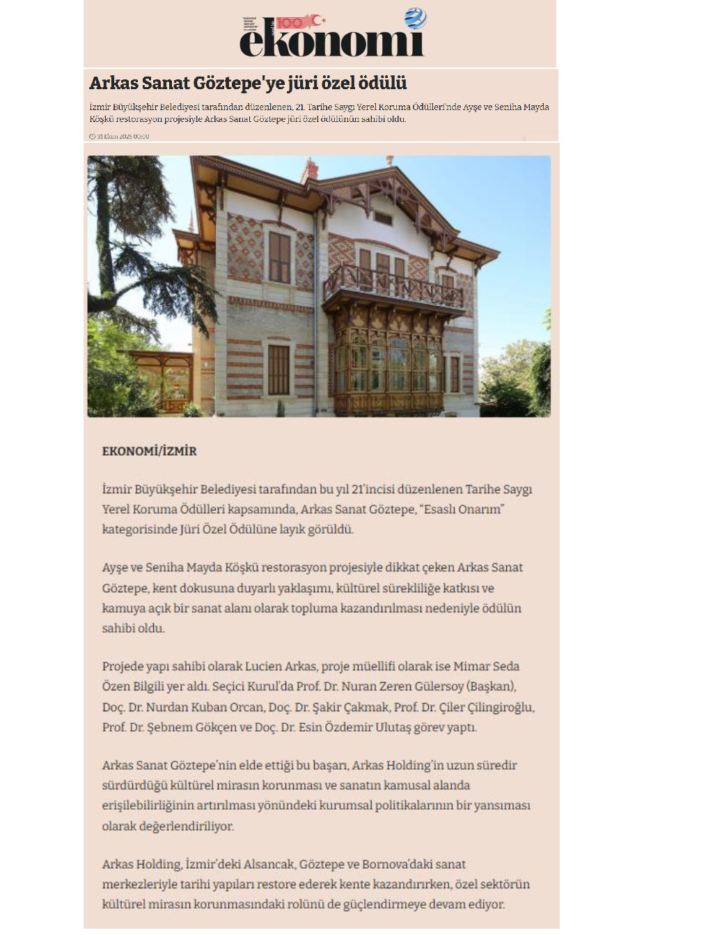 Arkas Sanat Göztepe, 21. Tarihe Saygı Yerel Koruma Ödülleri’nde Jüri Özel Ödülünün Sahibi Oldu