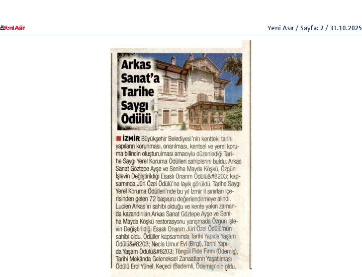 Arkas Sanat Göztepe, 21. Tarihe Saygı Yerel Koruma Ödülleri’nde Jüri Özel Ödülünün Sahibi Oldu