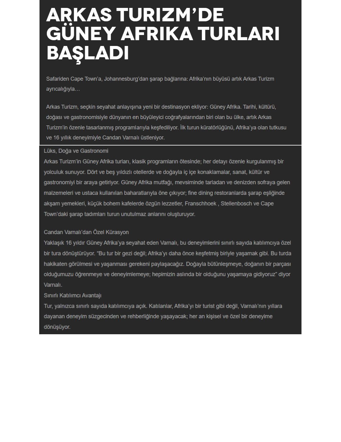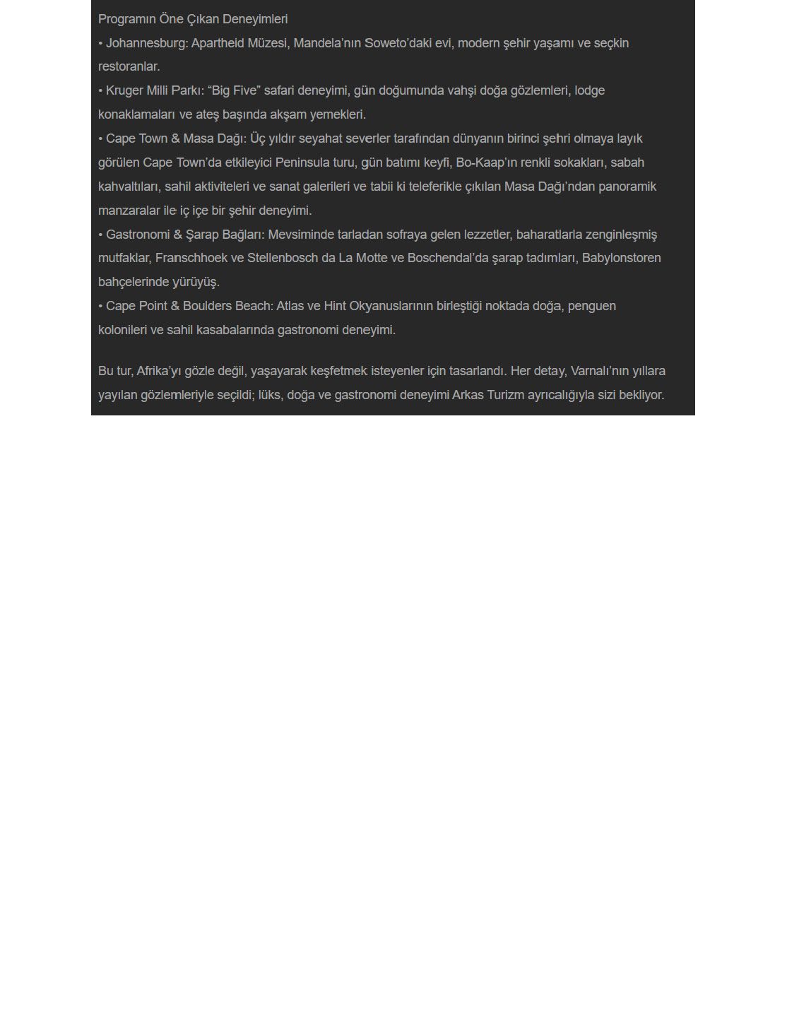 Arkas Turizm Güney Afrika Turlarına Başladı