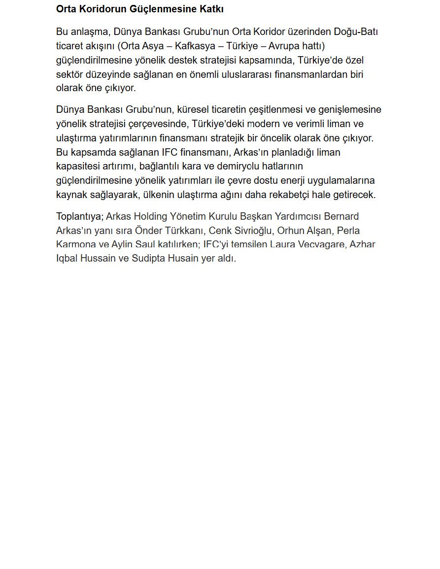 Arkas'a IFC Liderliğinde Sendikasyon Kredisi