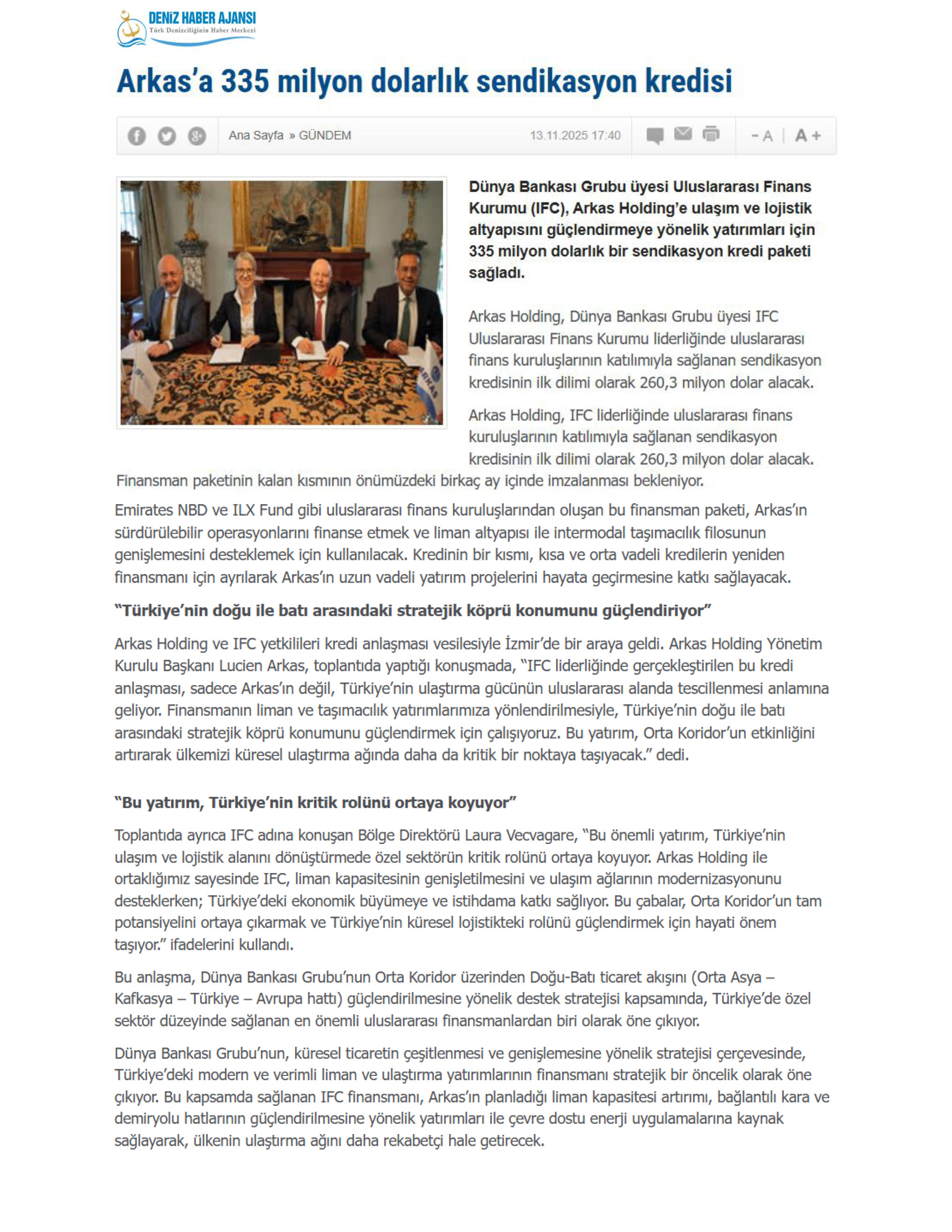 Arkas'a IFC Liderliğinde Sendikasyon Kredisi