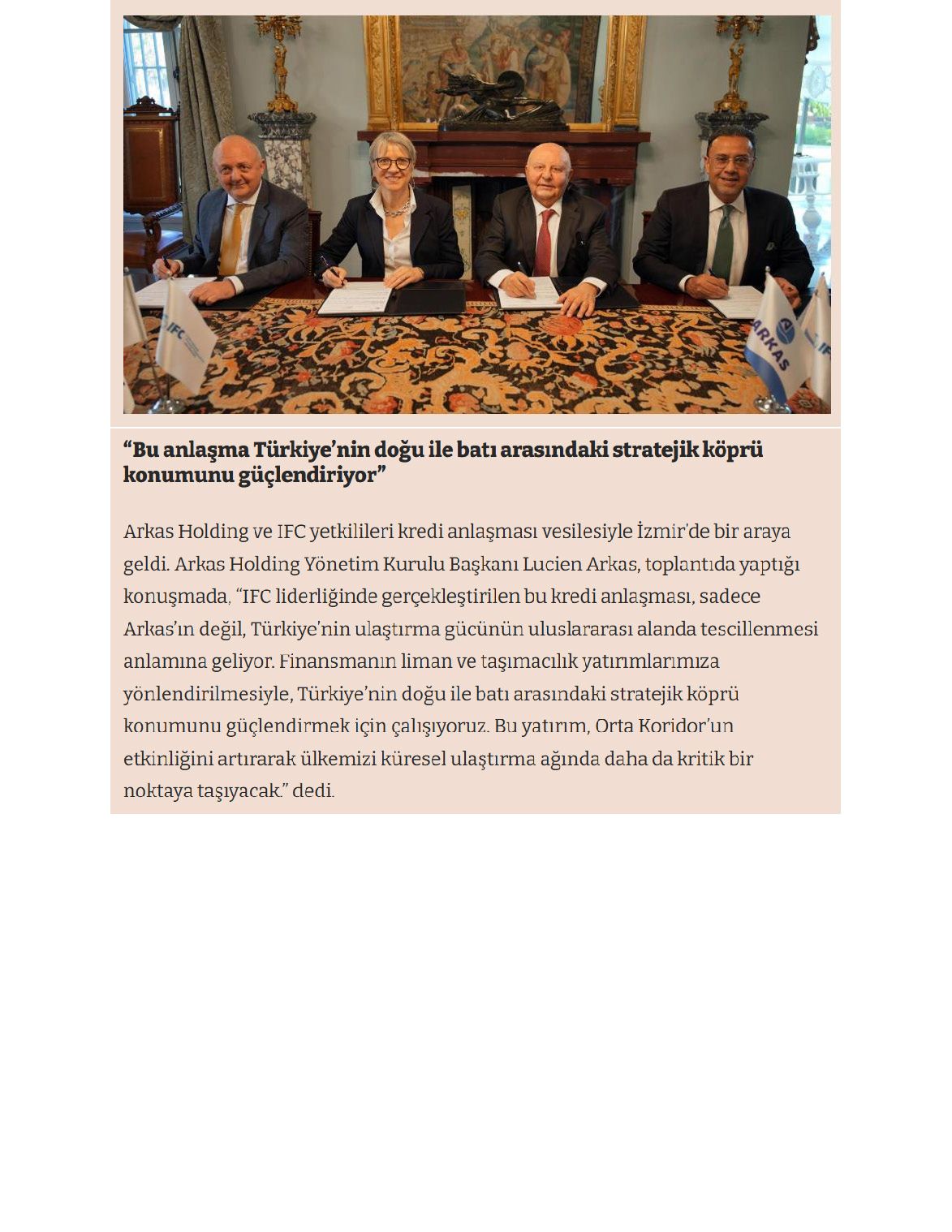 Arkas’a "Ulaşım Ve Lojistik Altyapısını Güçlendirmeye Yönelik Yatırımlarına Destek İçin” Sendikasyon Kredisi