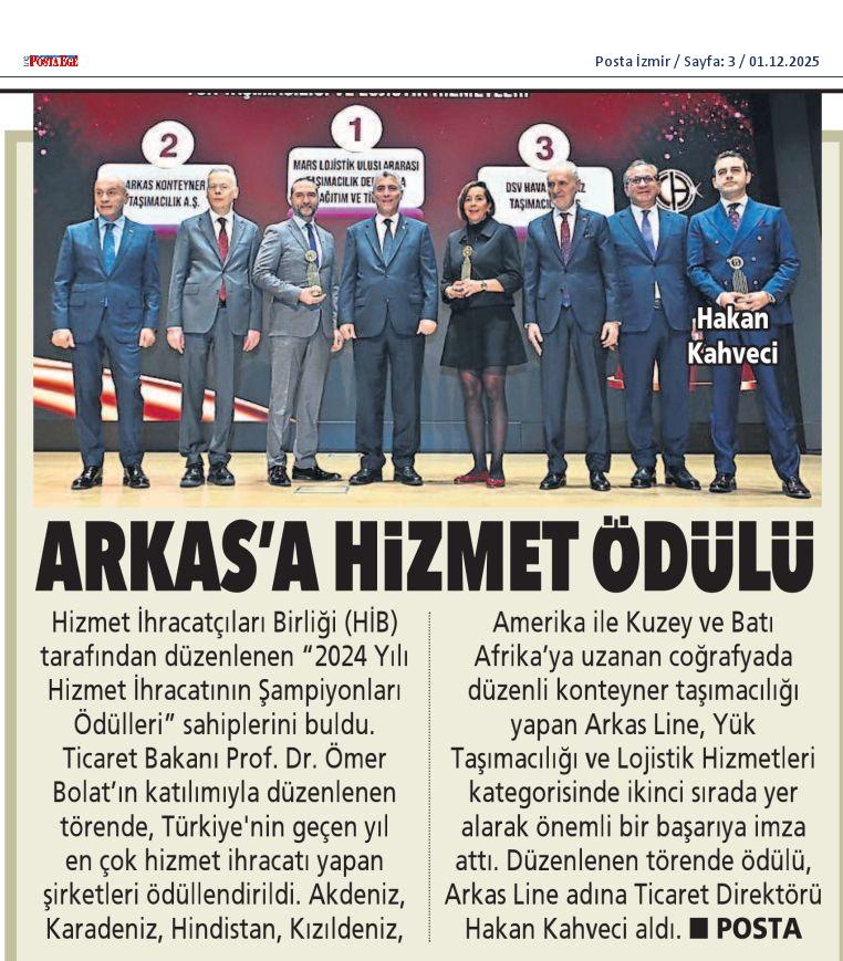 Arkas Line Takes Second Place at the 2024 Service Export Champions Awards