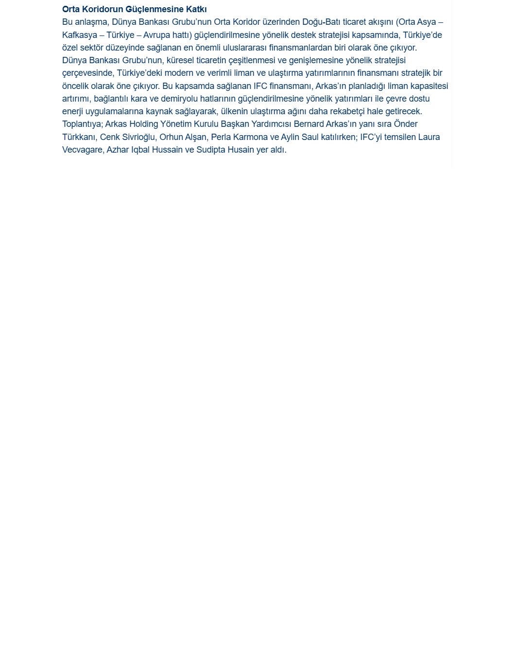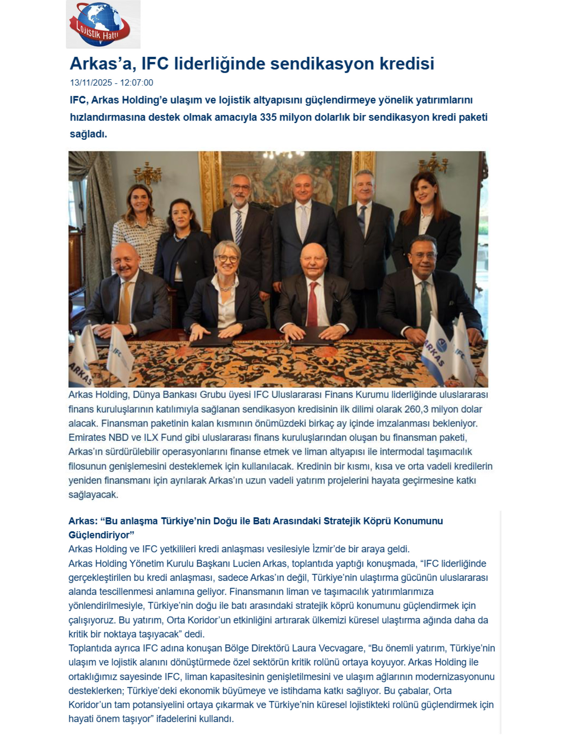 Arkas’a, IFC Liderliğinde Sendikasyon Kredisi