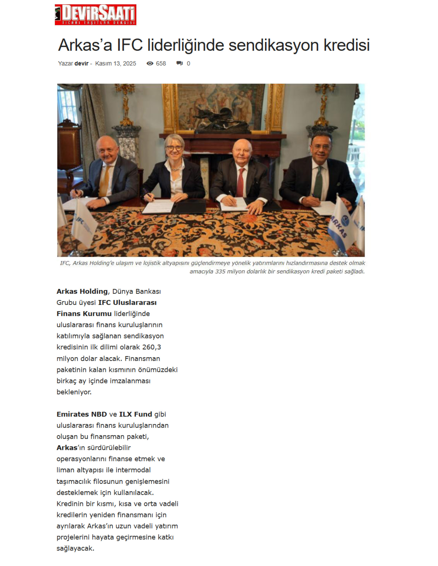 Arkas'a IFC Liderliğinde Sendikasyon Kredisi