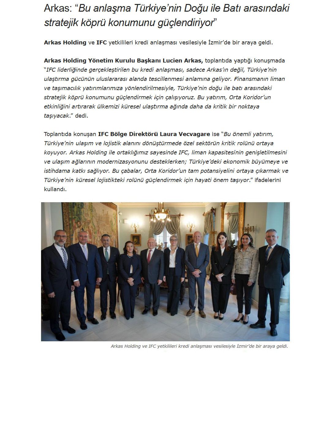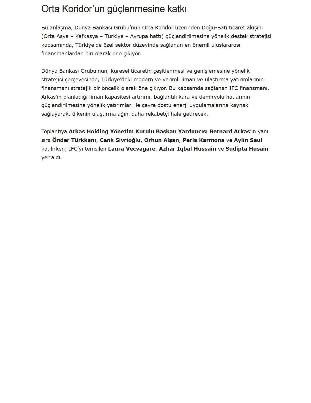 Arkas’a, IFC Liderliğinde Sendikasyon Kredisi