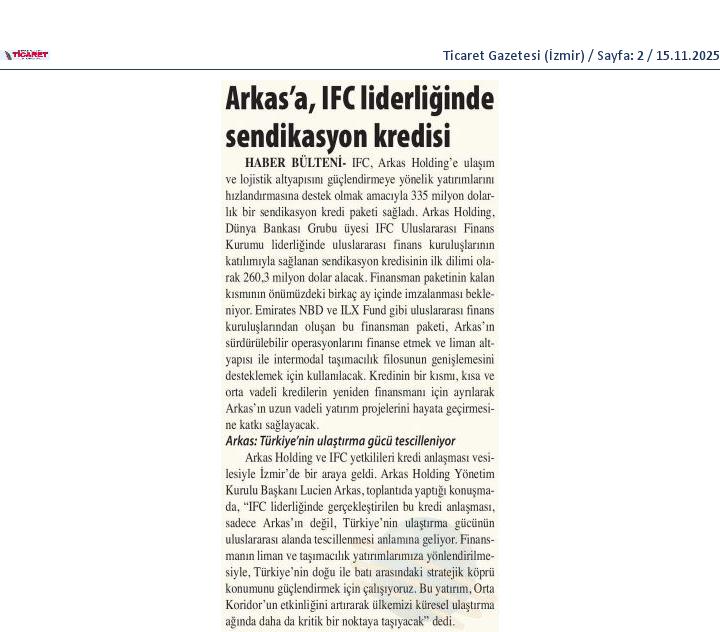 Arkas'a IFC Liderliğinde Sendikasyon Kredisi