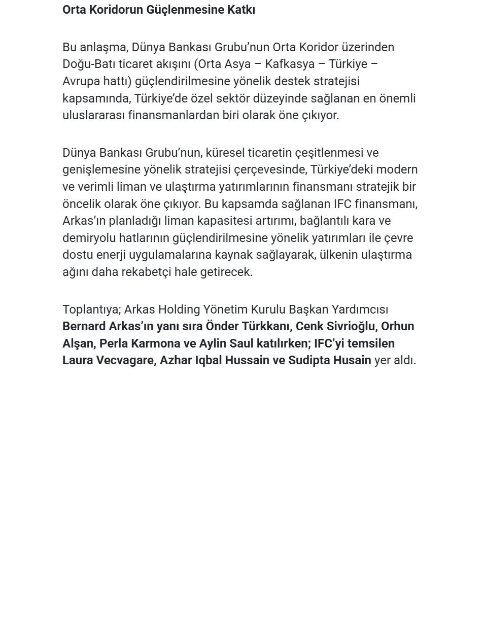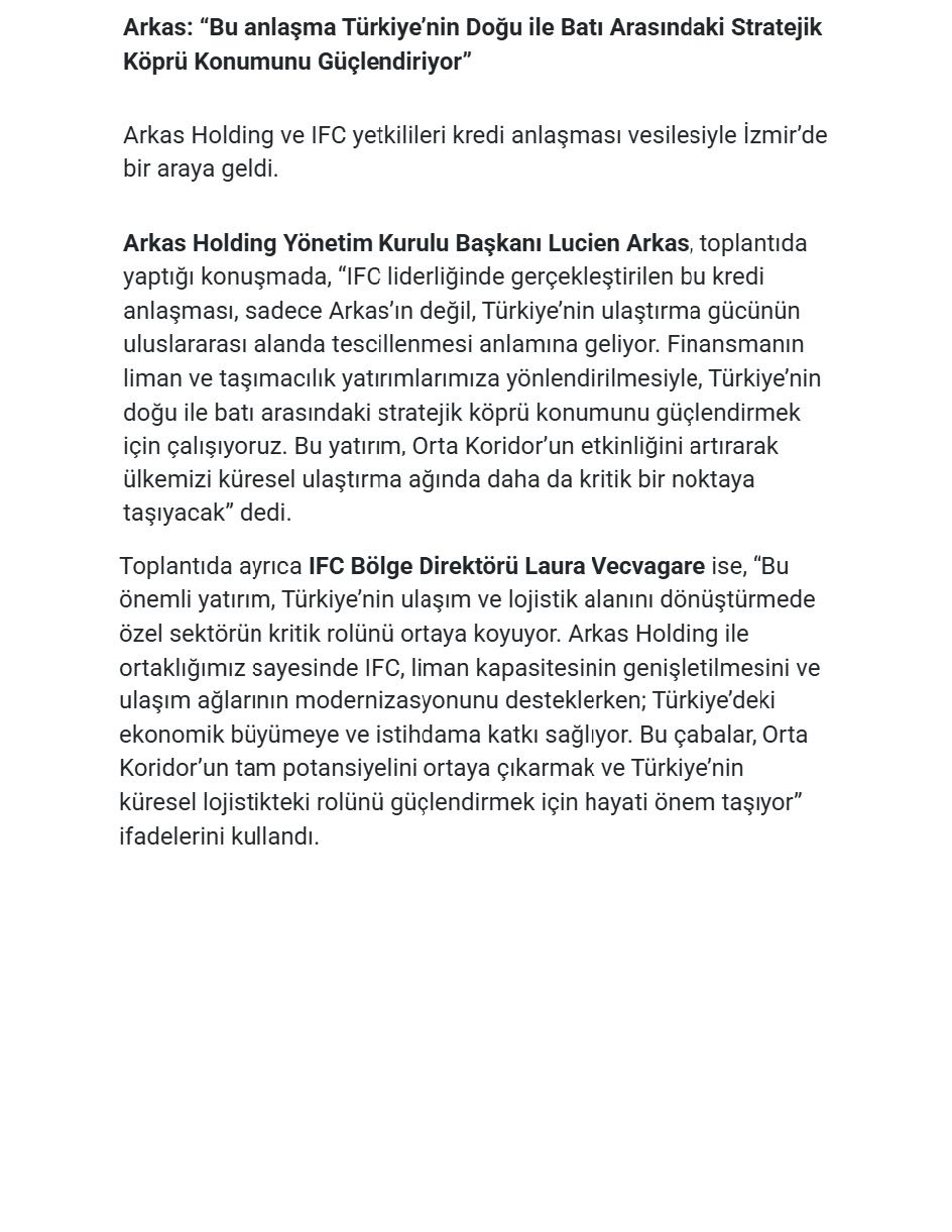 Arkas Secures IFC-Led Syndicated Loan