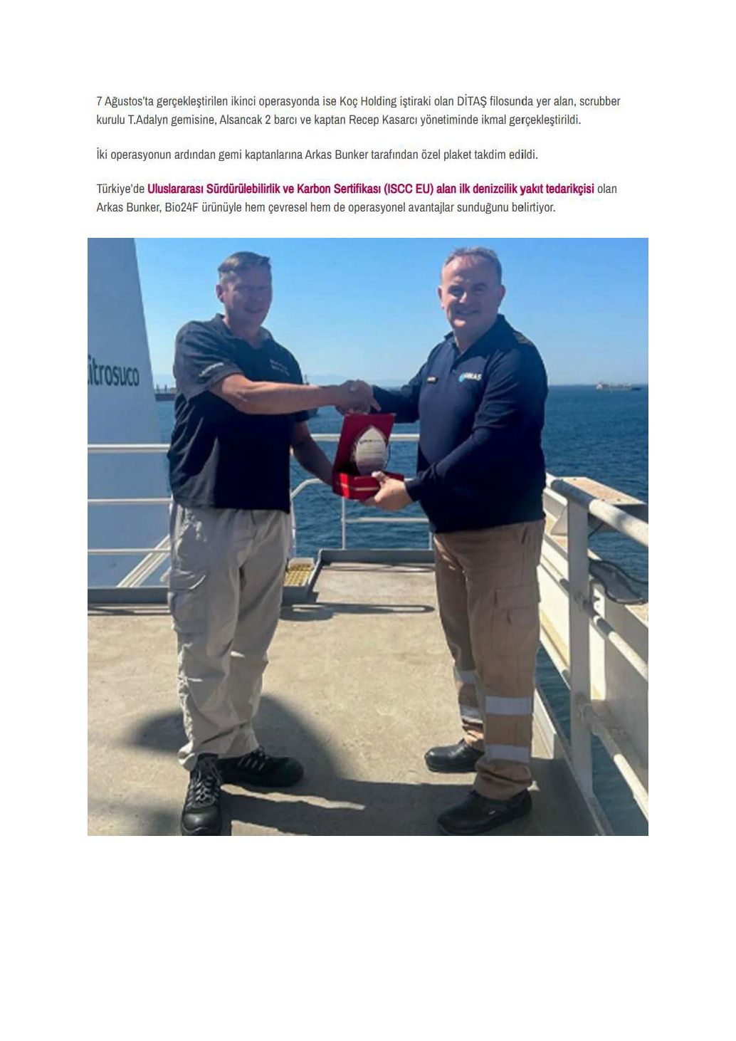 Arkas Bunker’dan CITROSUCO Ve DİTAŞ’a Sürdürülebilir Biyoyakıt Tedarikleri