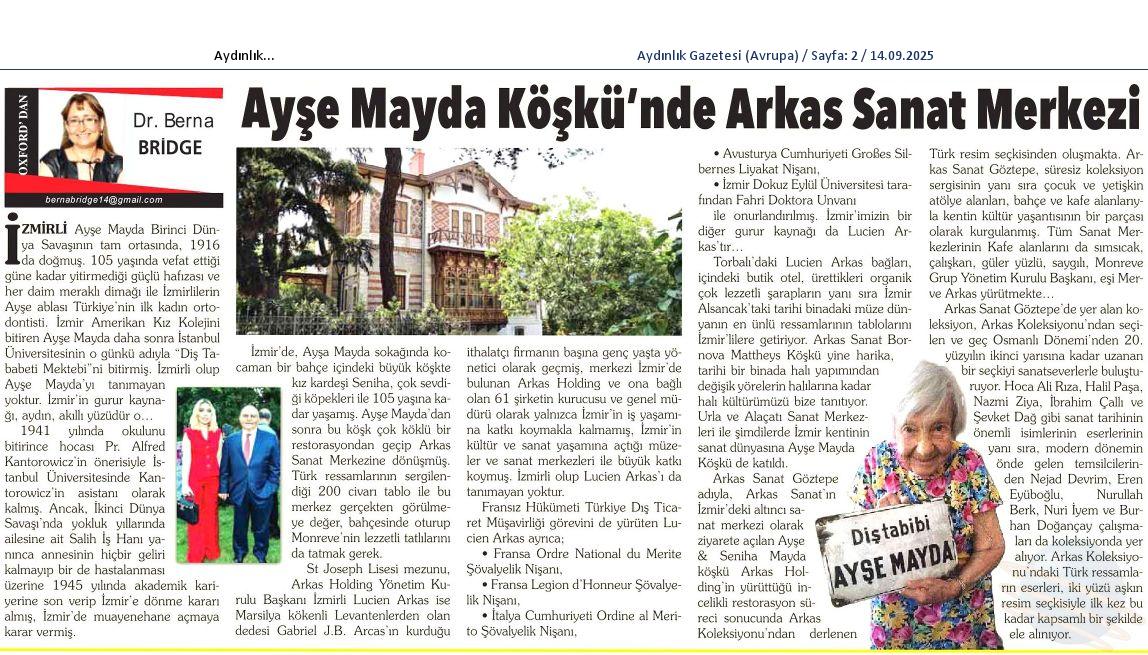 Ayşe Mayda Köşkü'nde Arkas Sanat Merkezi