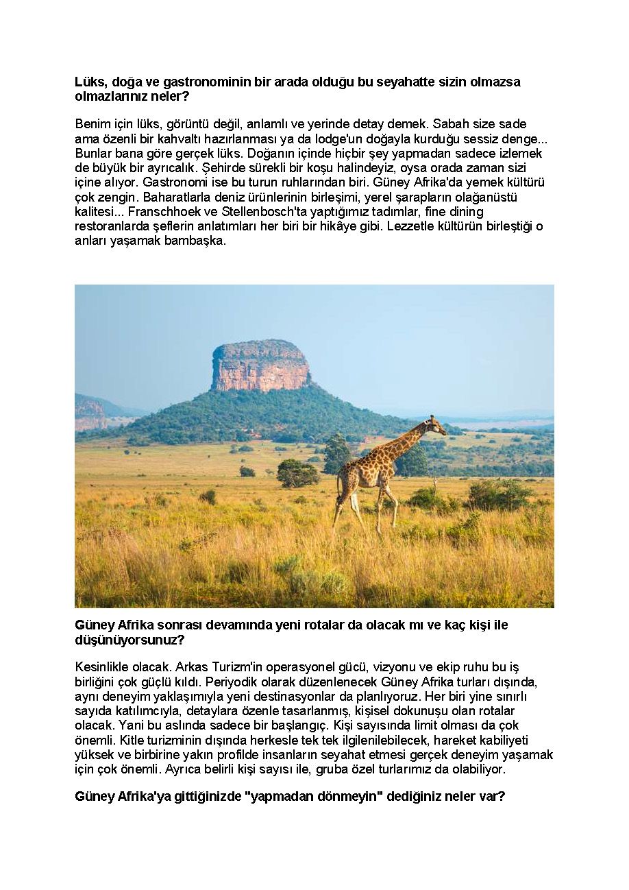 Arkas Turizm Güney Afrika Turlarına Başladı