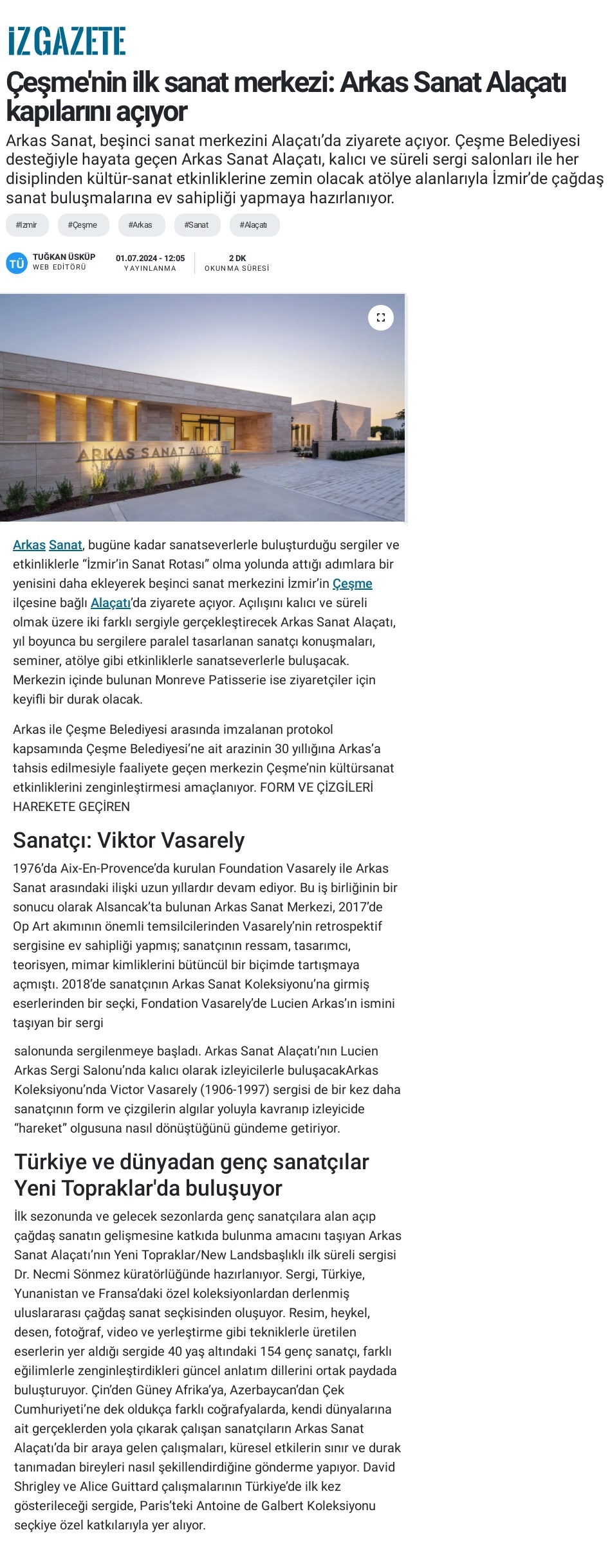Arkas Sanat Alaçatı 13 Temmuz'da kapılarını açıyor