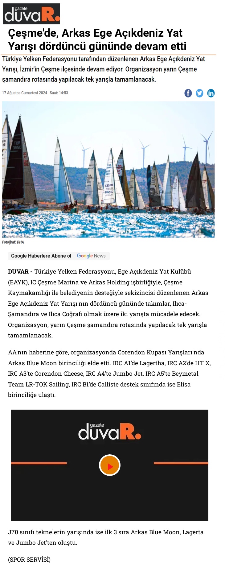 Arkas Aegeanlink Regatta heyecanı!