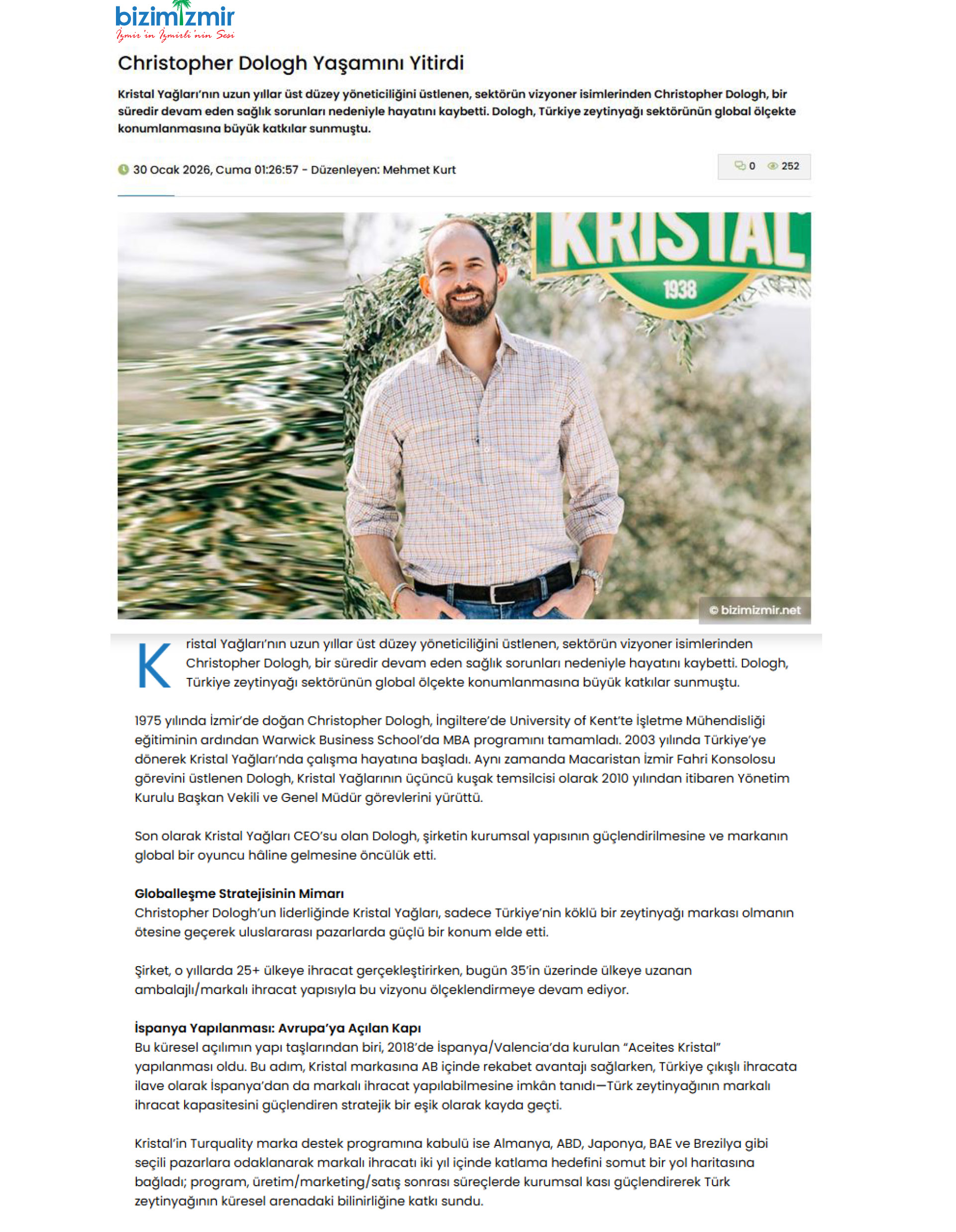 Kristal Yağları CEO’su Christopher Dologh Yaşamını Yitirdi