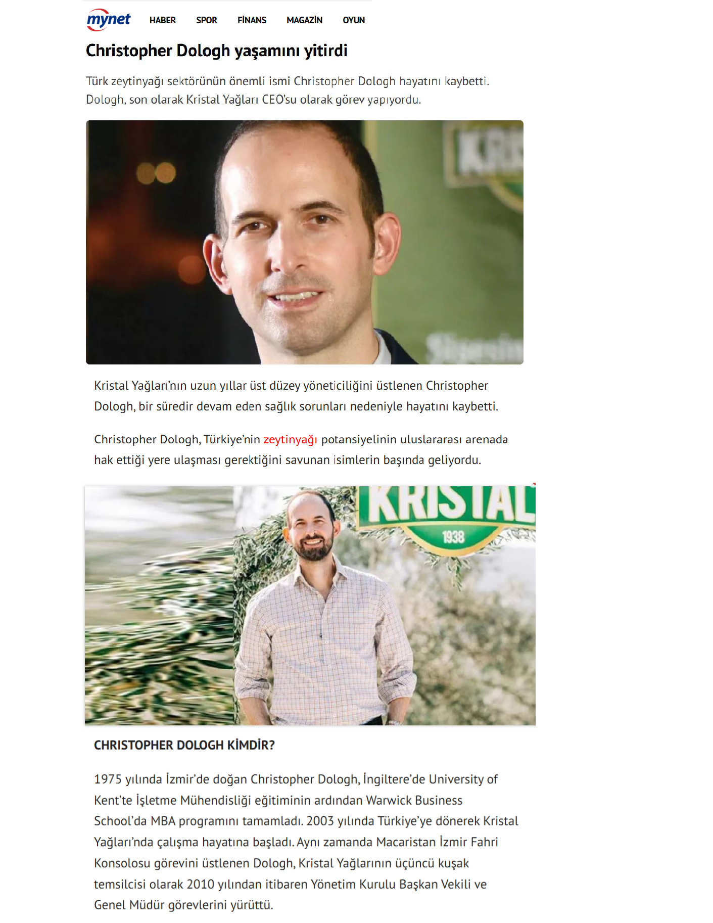 Kristal Yağları'nın CEO'su Christopher Dologh Hayatını Kaybetti
