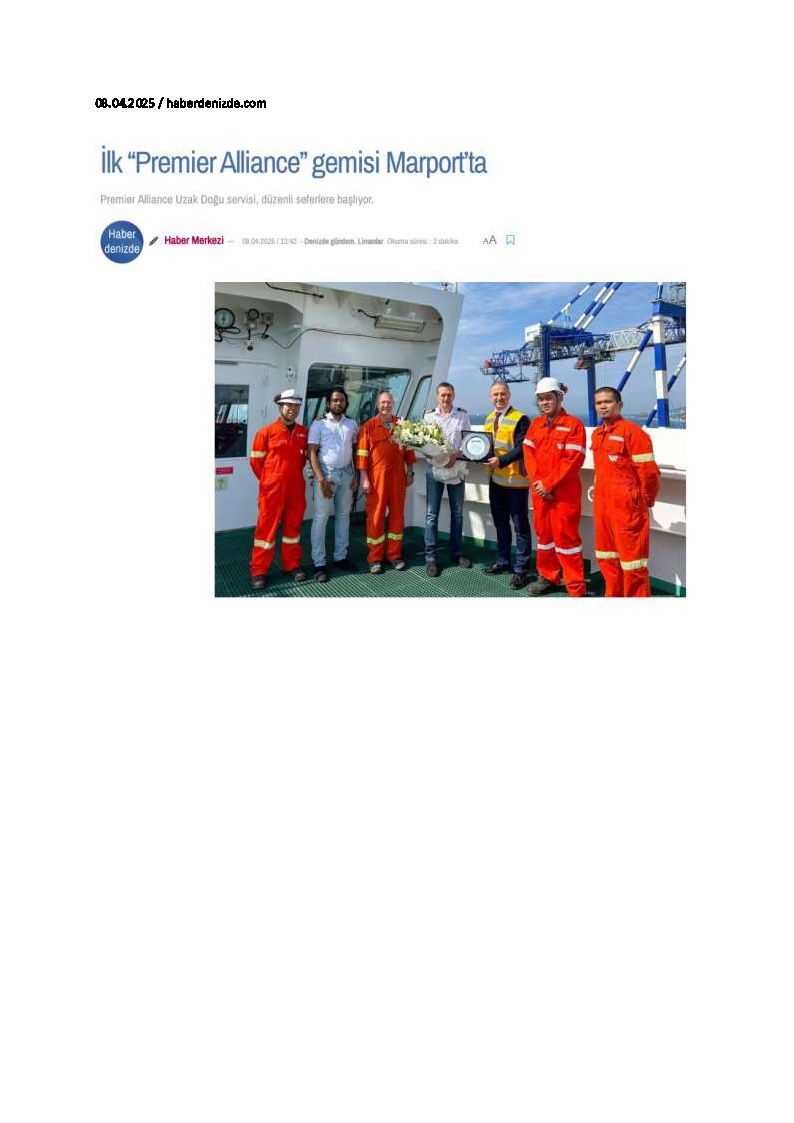 Premier Alliance iş birliğinin ilk gemisi Marport'ta