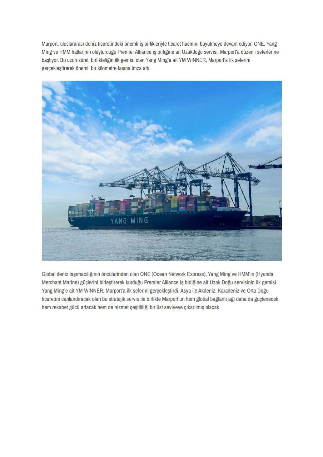 Marport, ONE ile Yeni Bir Uluslararası Servise Ev Sahipliği Yaptı