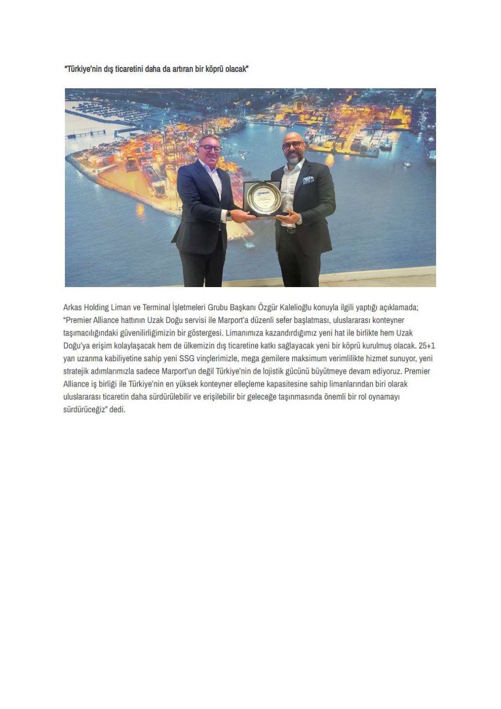 Marport uluslararası deniz ticaretindeki önemli iş birlikleriyle ticaret hacmini büyütmeye devam ediyor